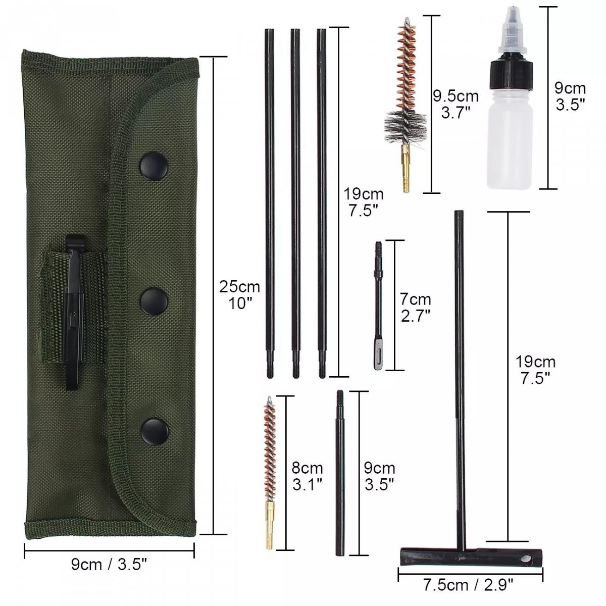 Все приладдя для чищення розміщується в нейлоновому чохлі оливкового кольору. Передбачено можливість кріплення на спорядження.