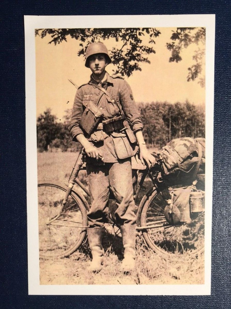 Велосипедист вермахта с полной выкладкой.
