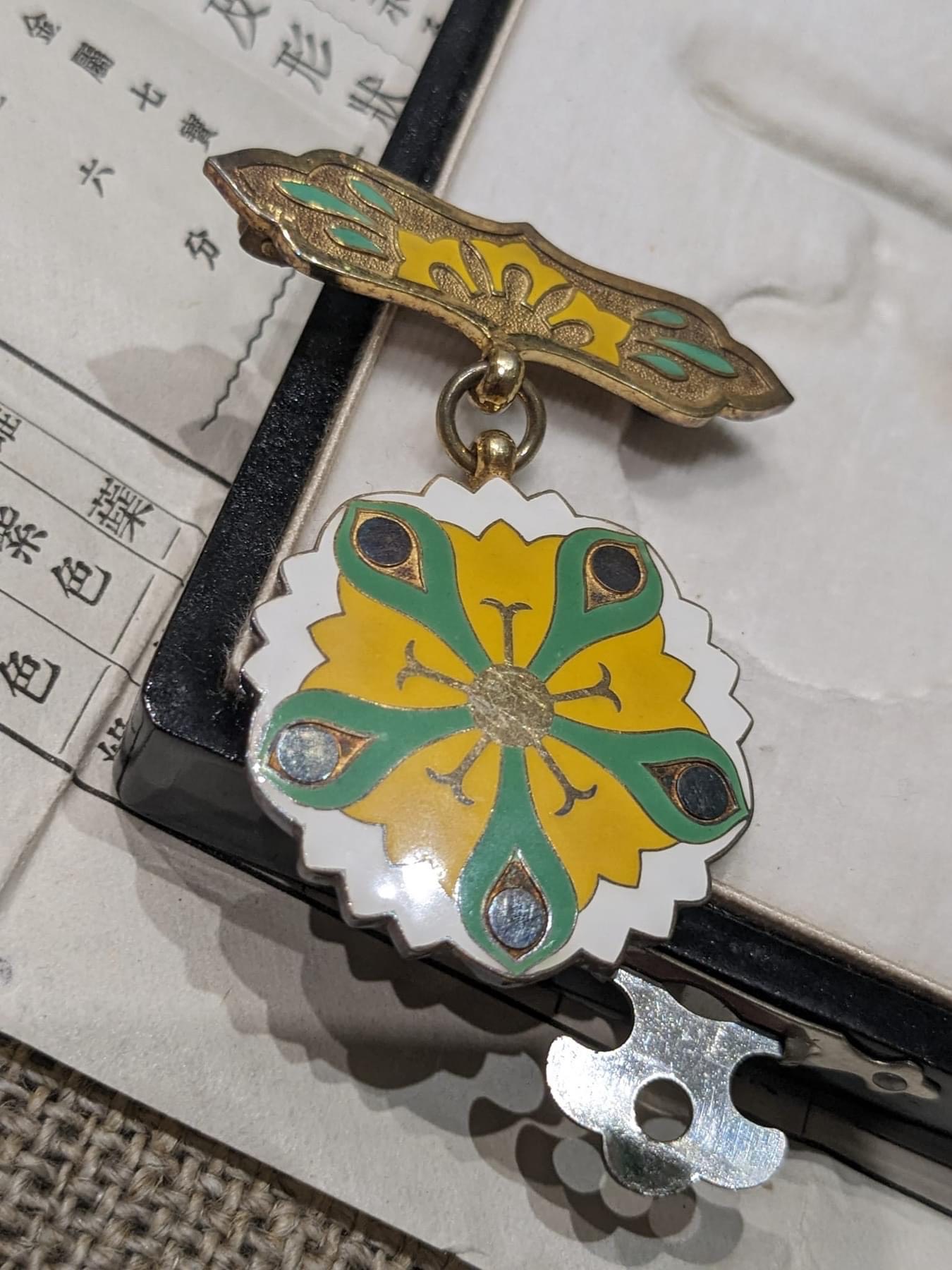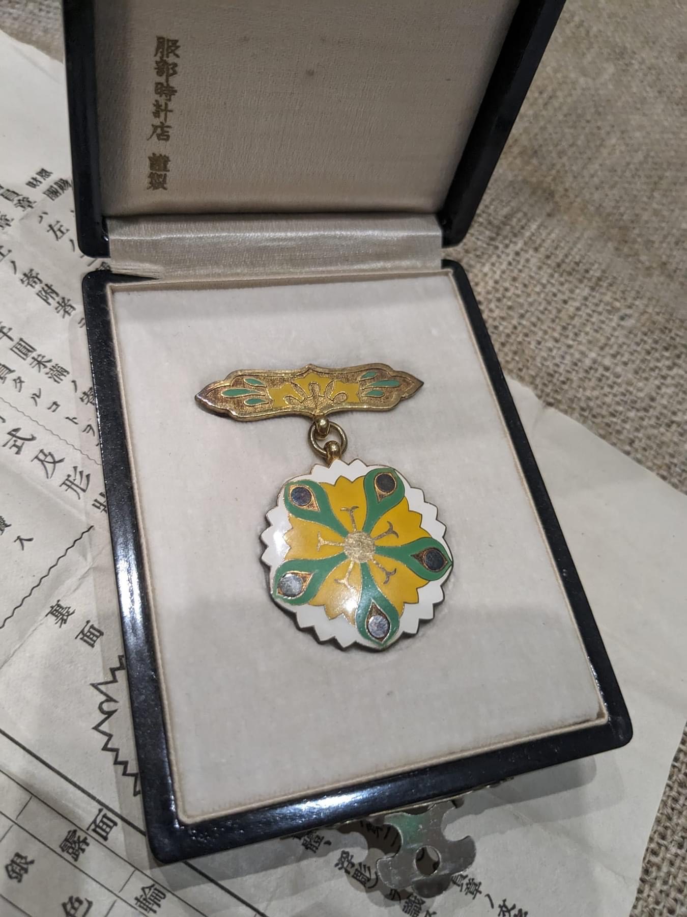 Японія. Відзнака "За заслуги" імператорського фонду "Сайсекай". 1911 рік. Срібло. Емалі. Оригінальний футляр с вкладишем- положенням про порядок членства в асоціації.