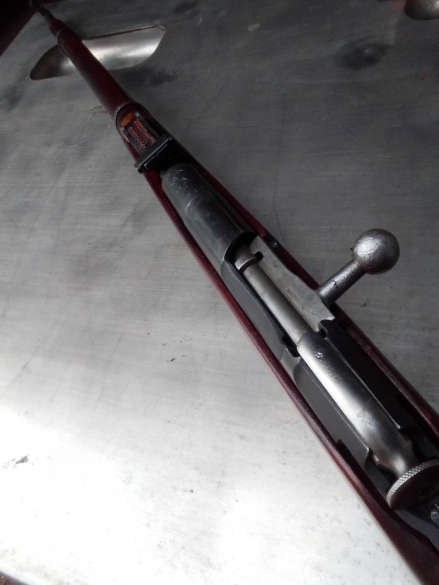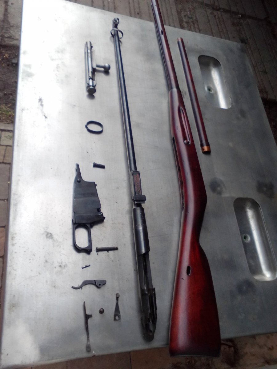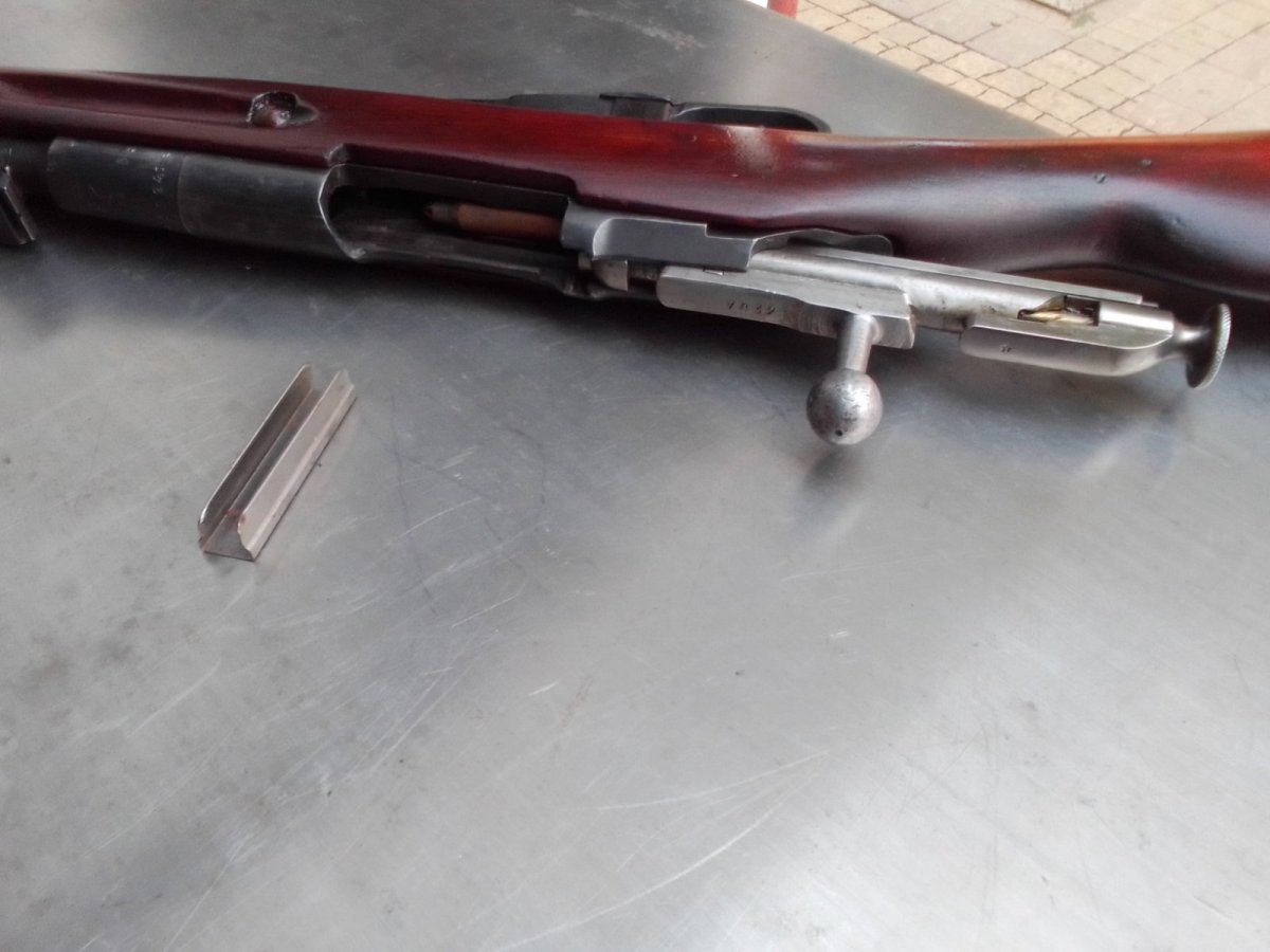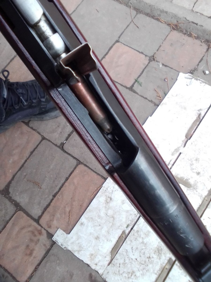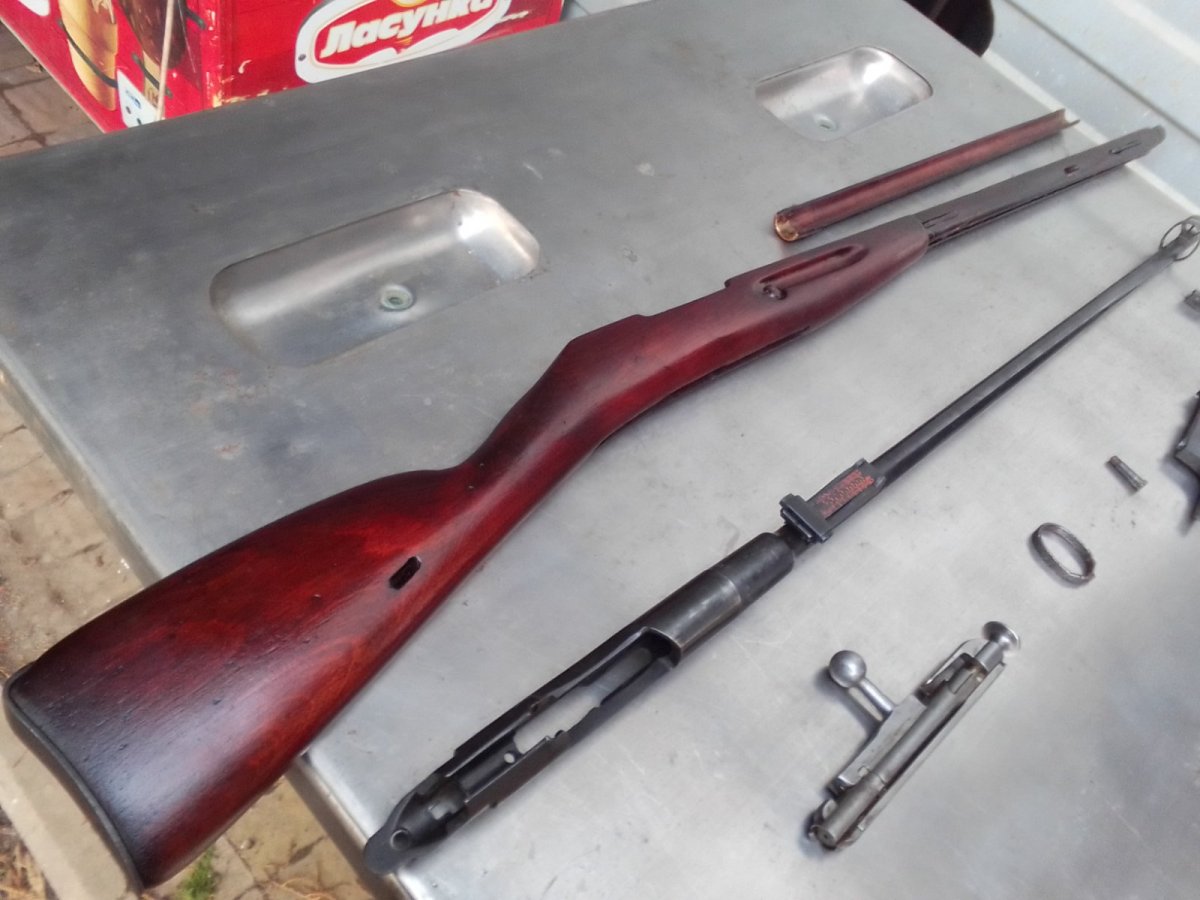 Винтовка Мосина СХП полностью в рабочем состоянии.Без доков. Штифт расположен за патронником так, что досыл боевого патрона не возможен, только холостой.Второй штифт находится возле дульного среза. Место вставки штифтов практически не видно. Ложевые пружины кованные, Отсечка отражатель не с неё, молотковая, работает отлично. Работа СХП без утыканий и заеданий. Планка и холостые в комплекте.