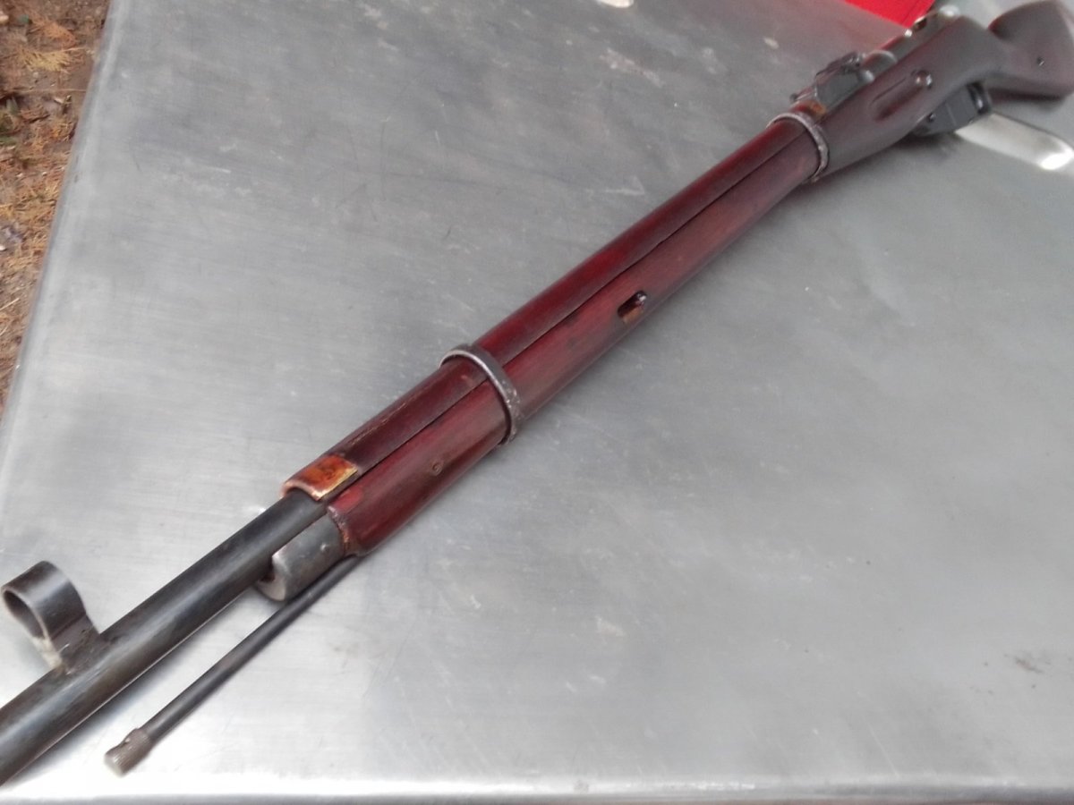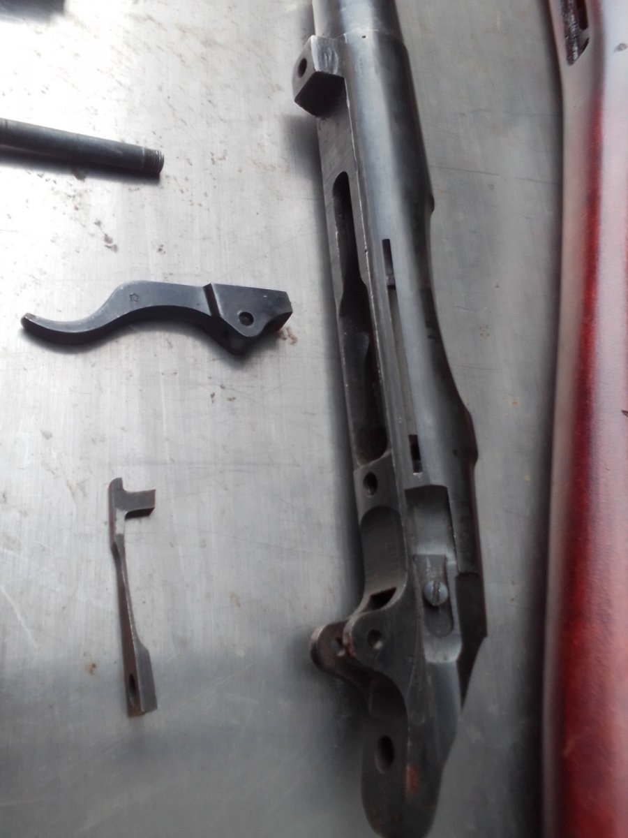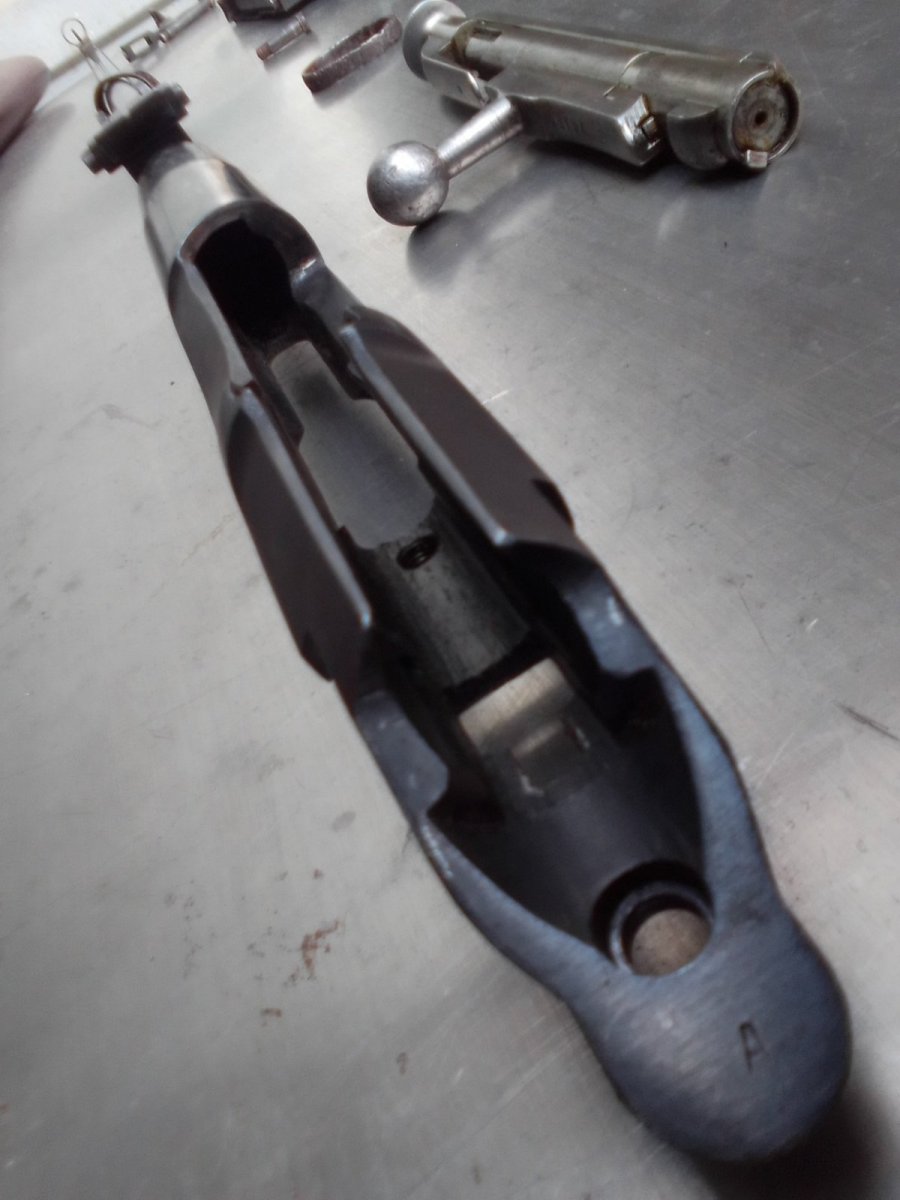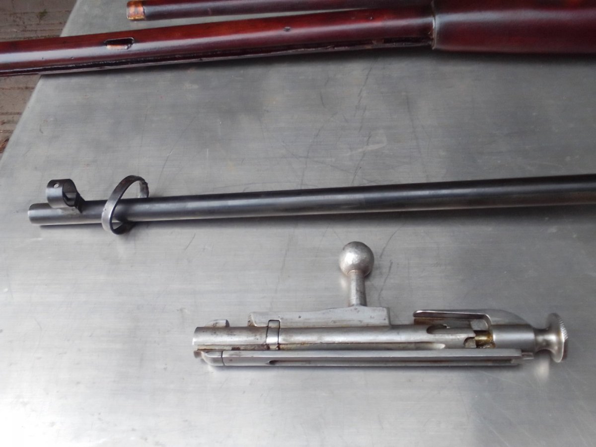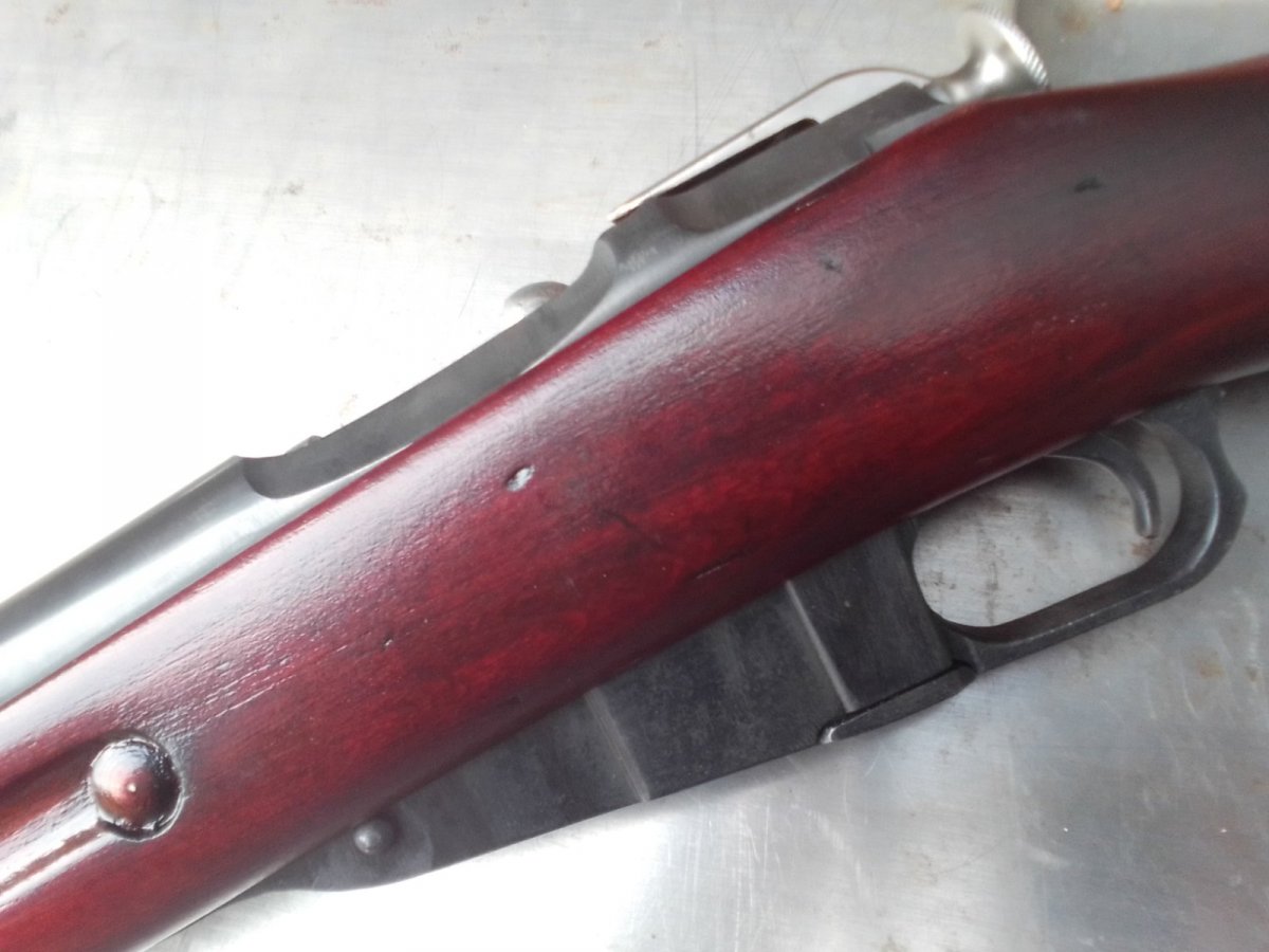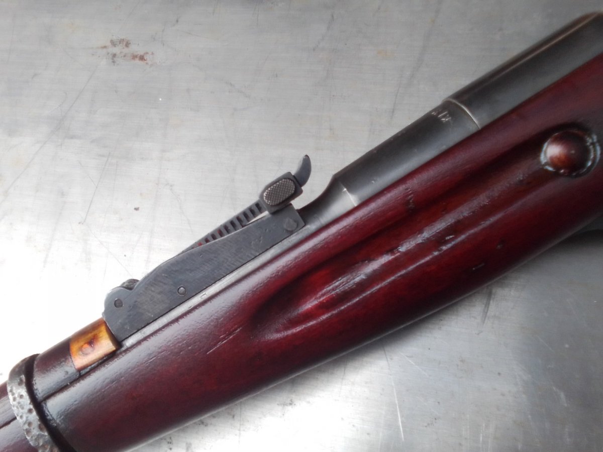 Винтовка Мосина СХП полностью в рабочем состоянии.Без доков. Штифт расположен за патронником так, что досыл боевого патрона не возможен, только холостой.Второй штифт находится возле дульного среза. Место вставки штифтов практически не видно. Ложевые пружины кованные, Отсечка отражатель не с неё, молотковая, работает отлично. Работа СХП без утыканий и заеданий. Планка и холостые в комплекте.