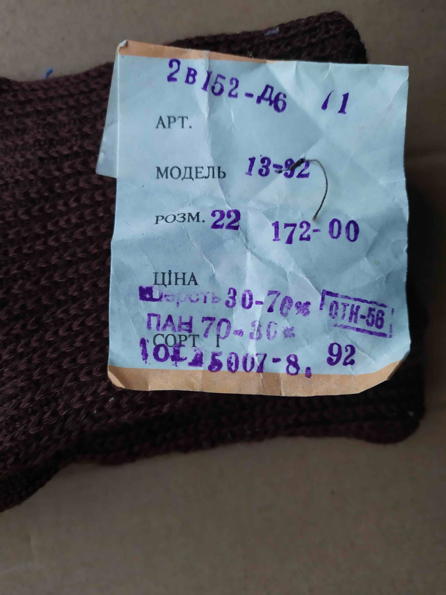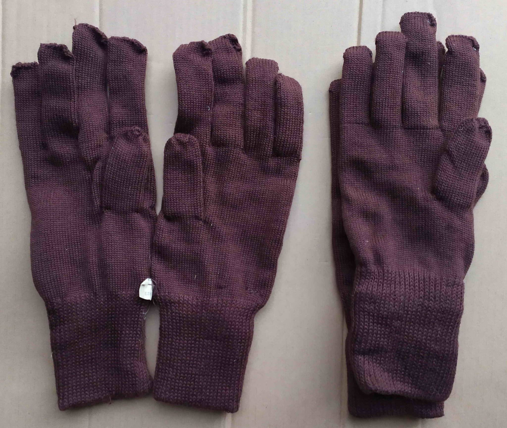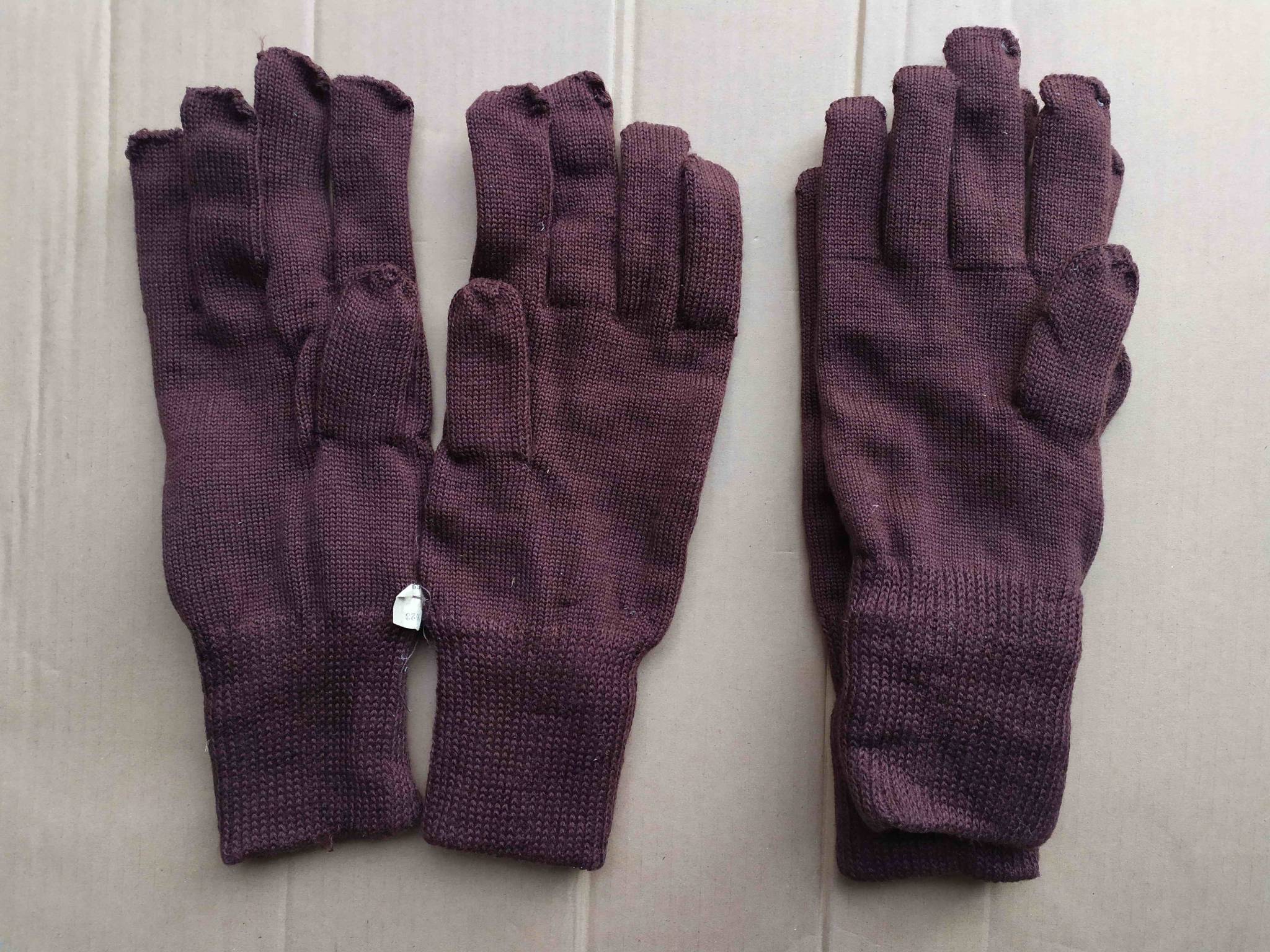 Оригинальные армейские зимние перчатки советского производства. Ткань на основе натуральной шерсти. Размер по бирке 22. На обычную среднюю ладонь в обхвате над большим пальцем в 22 см также подходят, за счёт увеличенной длины закрывают не только запястье, но уже и часть руки. Сам по себе размер рассчитан на большую ладонь. Ткань хорошо тянется, не жмёт.