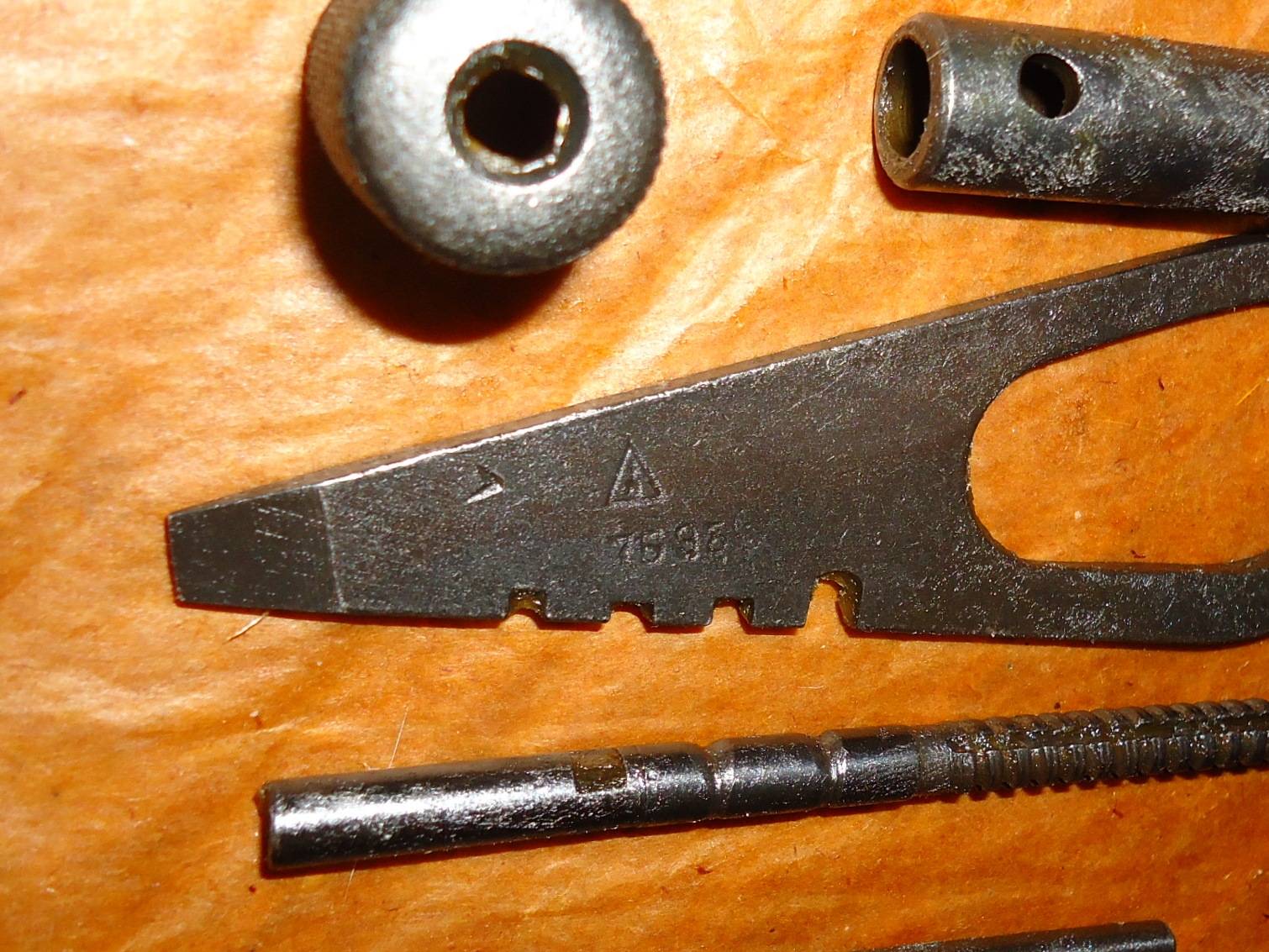 Вырезы на ней служат для проверки выхода бойка ударника из личины , поворота ударника при сборке затвора и доворота протирки на шомполе.