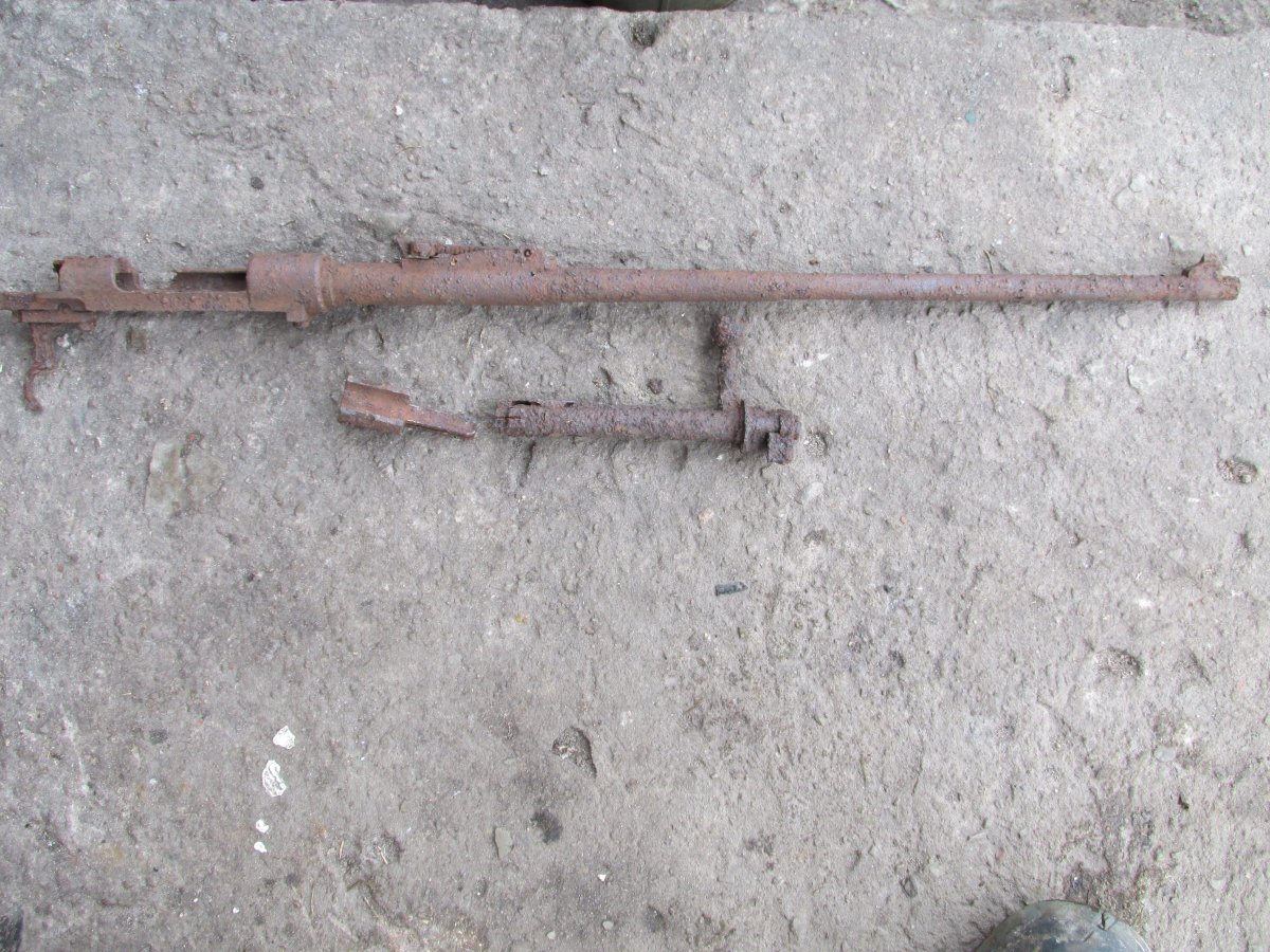 Всі деталі копані найдені в окопі в радіусі 2 метрів , в стволі пуля, на останьому фото вказав де знаходиться , візуально проглядається, ствол не чистився чистка тільки поверхносна від бруду.