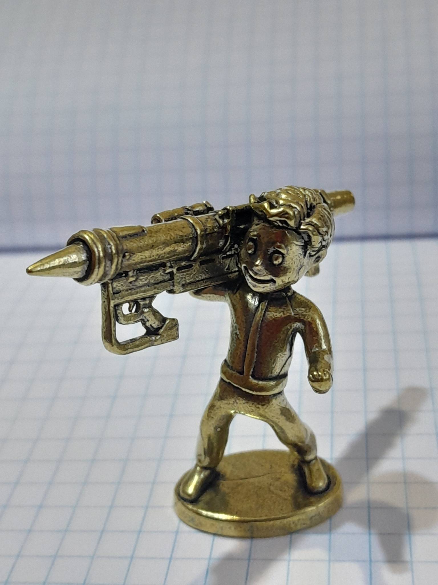 Пропоную колекційну мініатюру з мідного сплаву — фігурка хлопчика, який тримає переносний гранатомет на плечі. Деталізована, важка для свого розміру, чудово підійде для колекції, декору або в якості оригінального подарунка.
