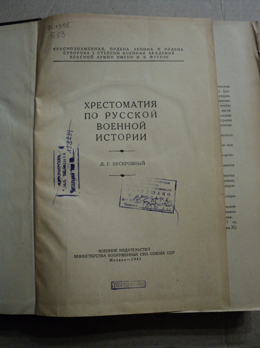 Хрестоматия по руской военной истории 1947 год.