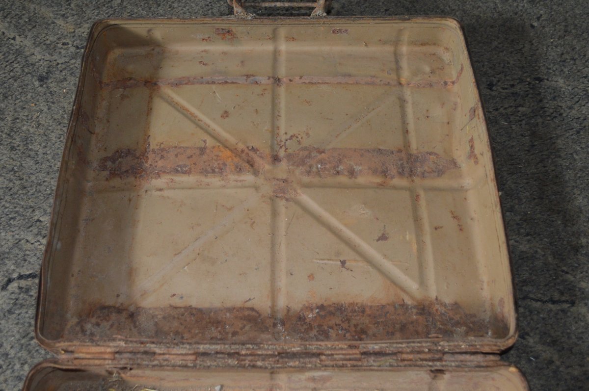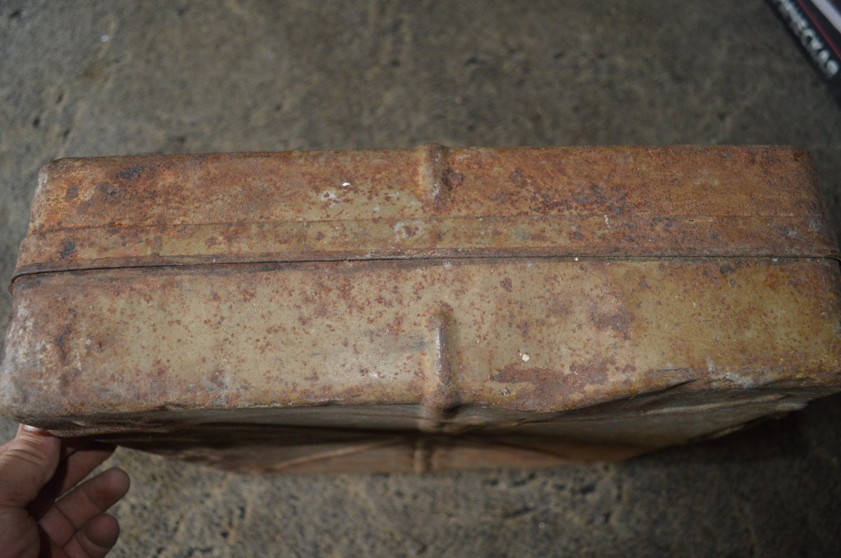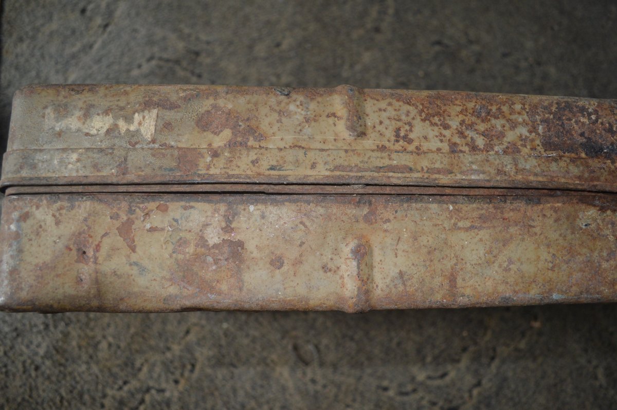 Хорошее состояние.Есть несколько отверстий.Имеется остаток бирки.Ящик закрывается плотно.Один бок чуть не плотно. Ручка закрывается .