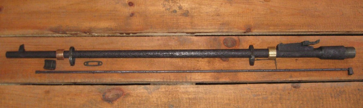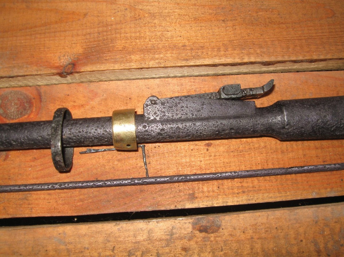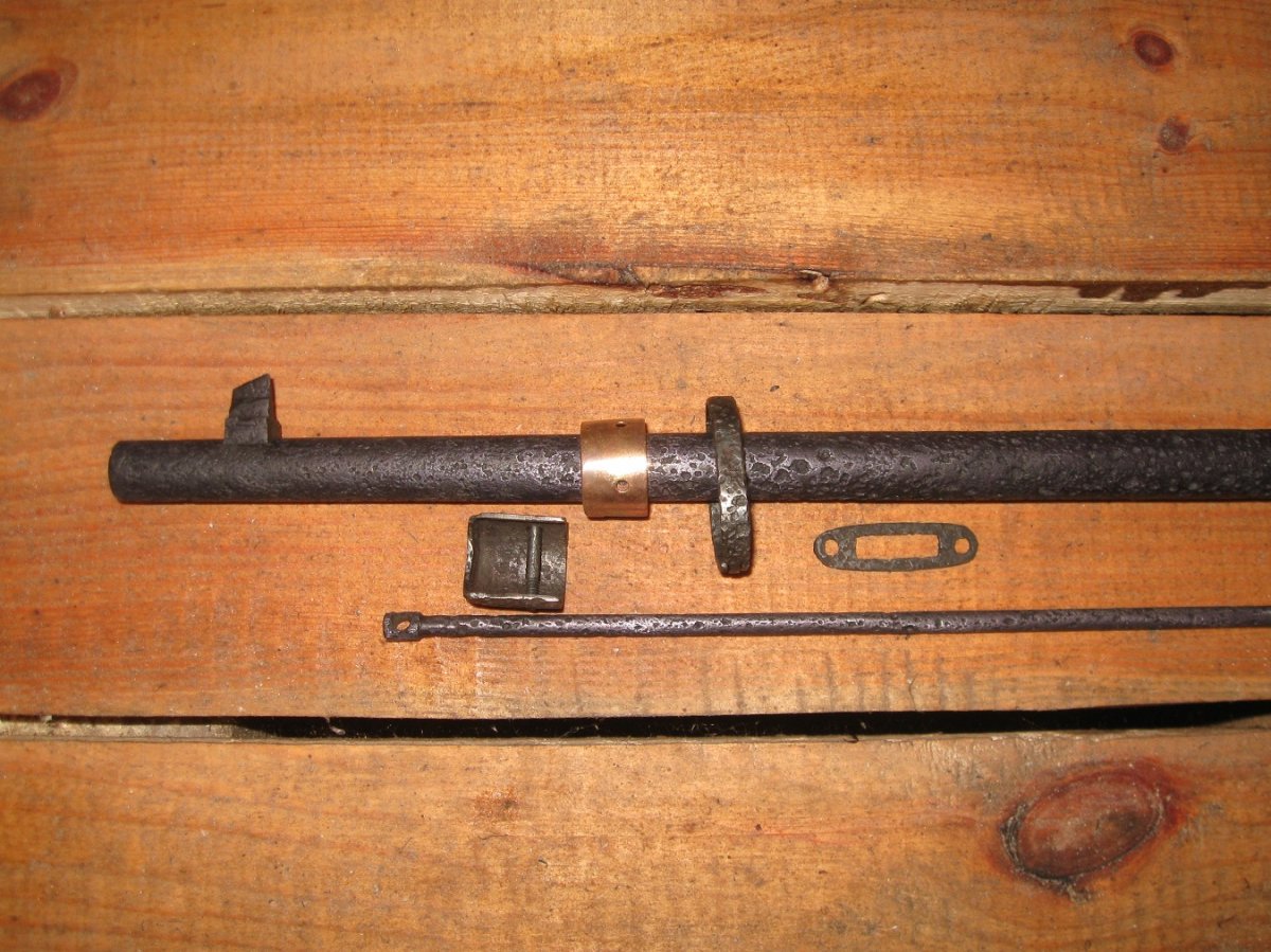 Копано, почищено, ствол и шомпол покрашены оруж.краской, остача воронение. Ствол 1932 г ровный, мушка не снималась, прицел всё по родне. Внутри ствола и патронника есть следы корозии, ммг патрона входит отлично без заеданий, для схп хорошая заготовка!