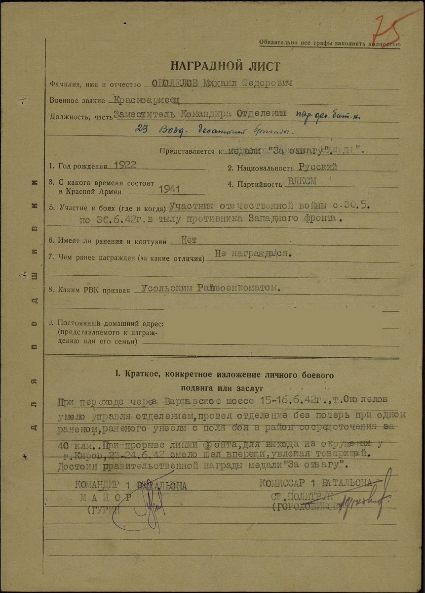 На зам. командира отделения парашютно-десантного батальона 23-й воздушно-десантной бригады Околелова М. Ф.
