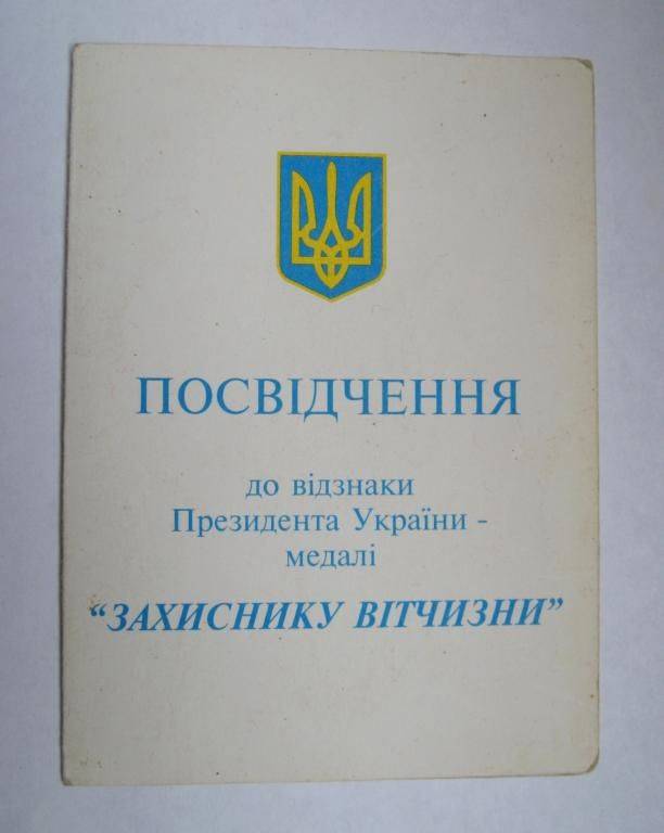 Захиснику Вітчизни = медаль + документ /посвідчення/ на жінку