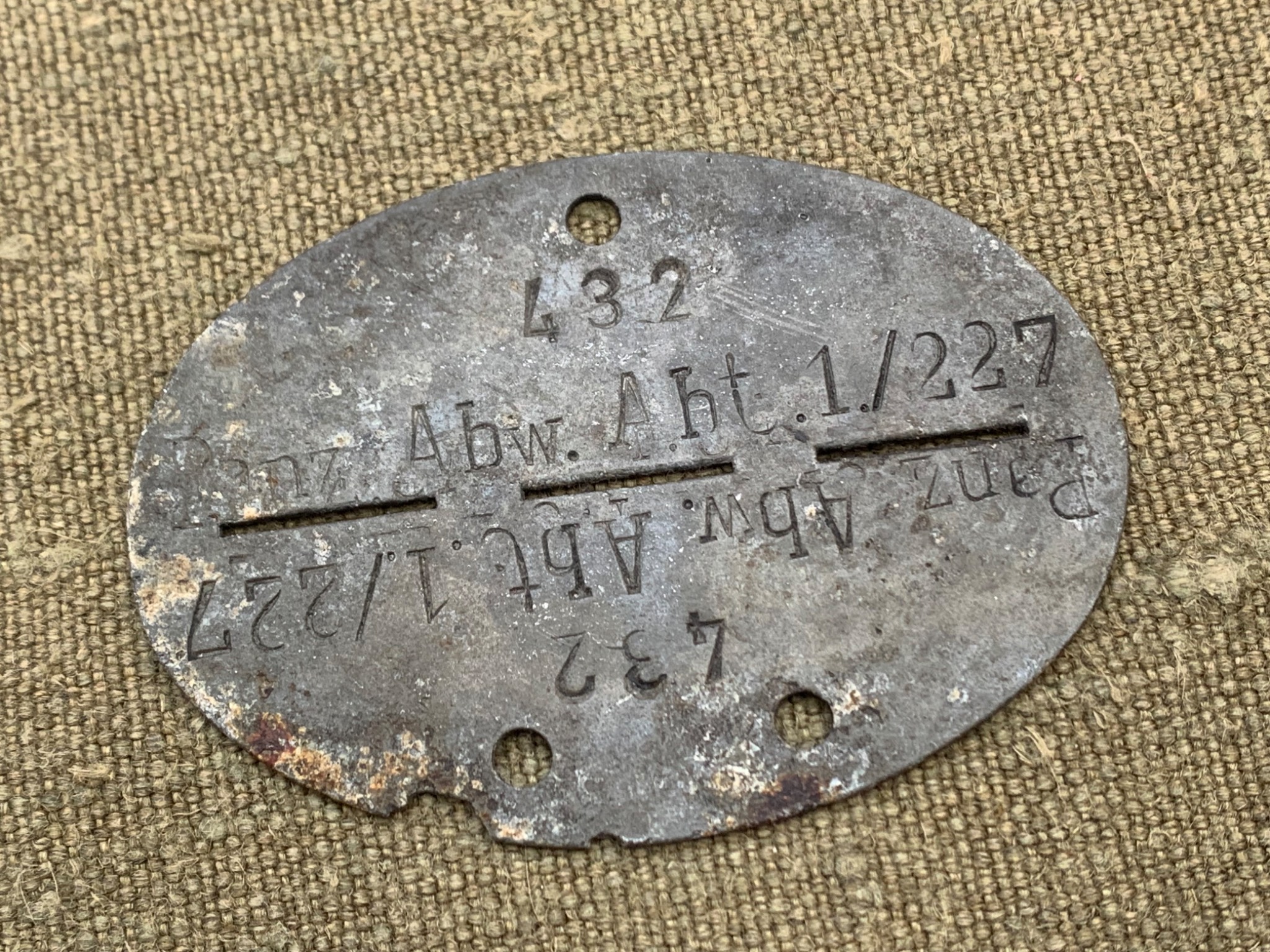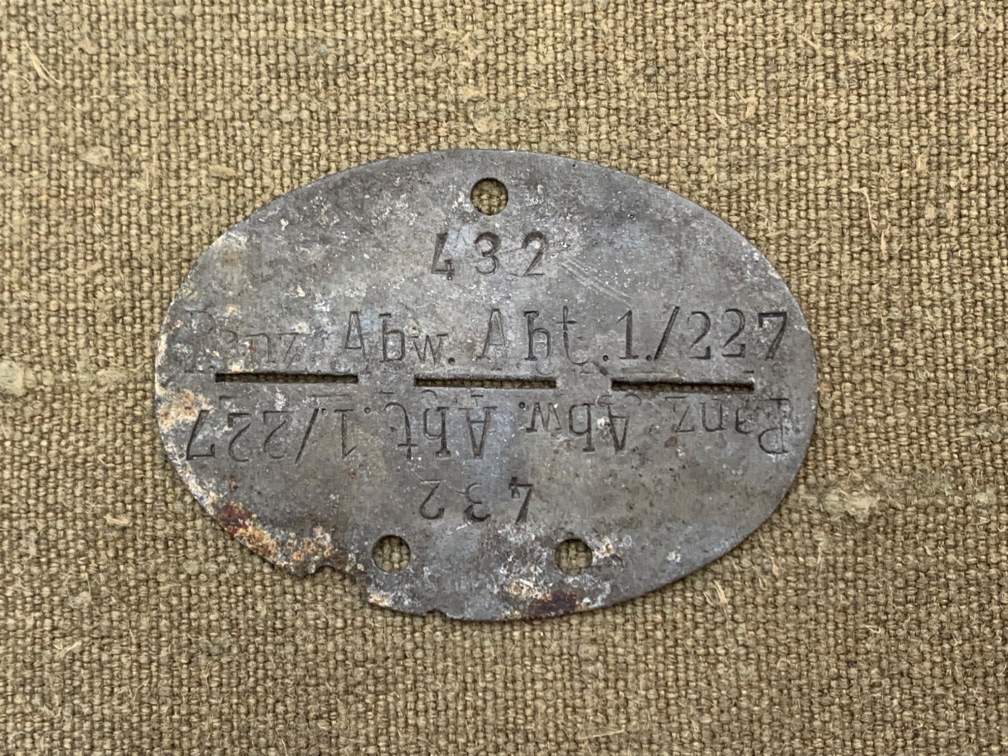 Жетон вояка з 1-го дивізіону 227-го протитанкового абтейлунгу (Panzerabwehr-Abteilung 227), який входив до складу 227-ої піхотної дивізії.