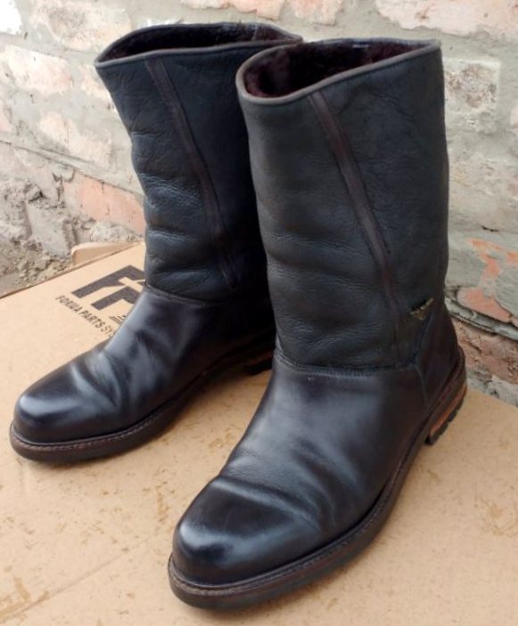 Зимние сапоги, голенище - овчина, низ - кожа и искусственный мех. 28,5 см. 43 р. для всех видов зимних мероприятий. Утепленные.