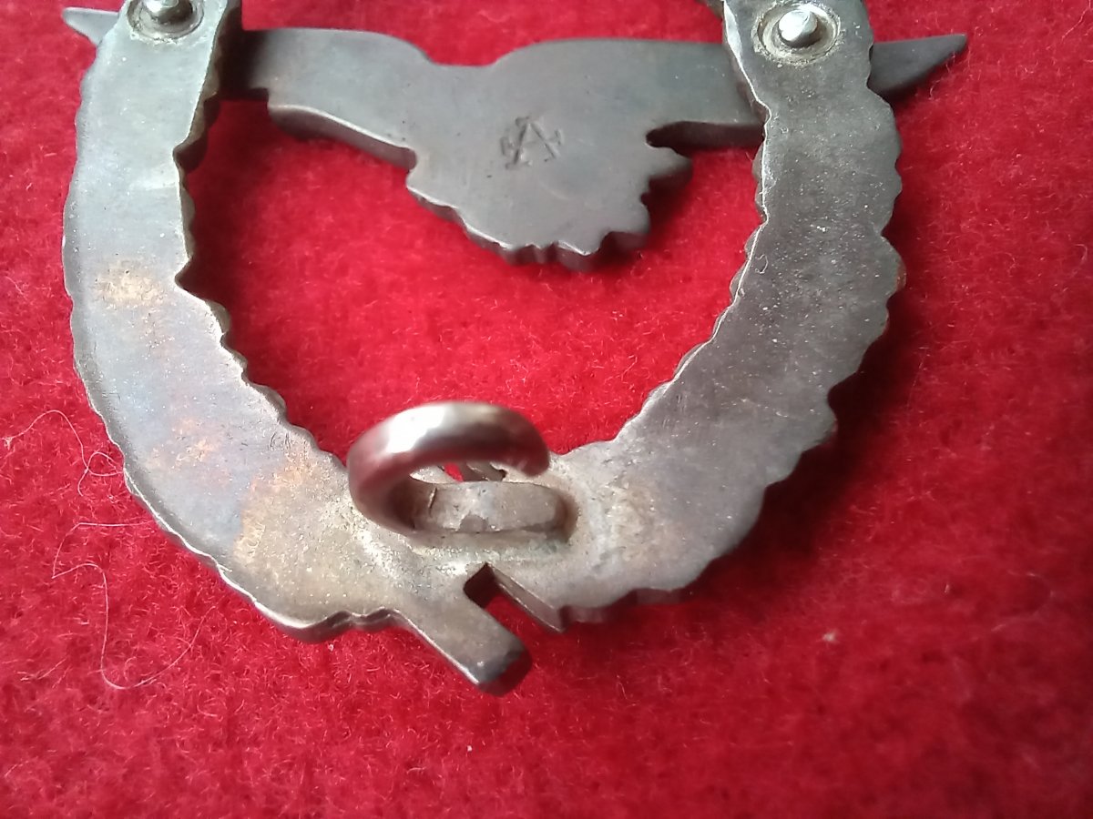 Немецкий знак Планерист - изготовлен полностью из серебра 900 пробы.Орел приклепан к венку на два штифта и расклепан под купольные заклепки.Петля иголка и кючок тоже серебрянные и припаяны на серебро.Знак старый качественный заказной.Клеймо Ассман - А.![]()