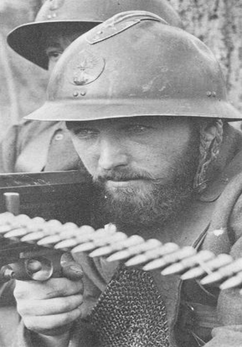 Французский солдат с пулеметом Гочкиса