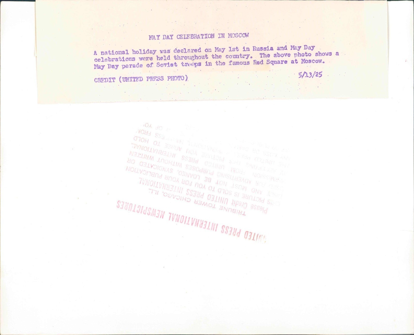 1925 May Day Parade Celebration Moscow Soviet Troops Red Square (реверс предыдущего фото)