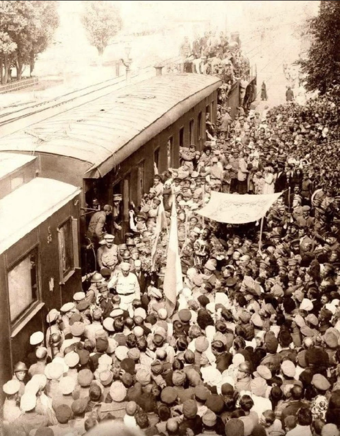 Зустріч Симона Петлюри на залізничному вокзалі у Фастові після того, як більшовиків витіснили з міста. 29 серпня 1919 року.