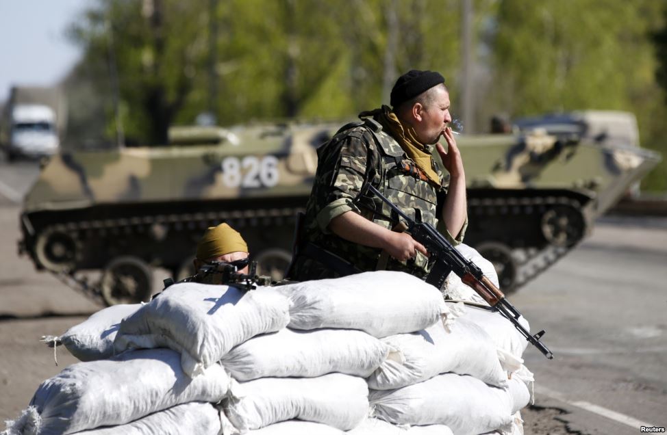 Украинские десантники на одном из блок-постов в районе Славянска. Апрель 2014г.