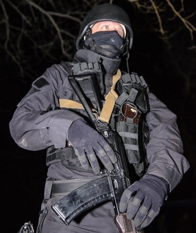 Боец одного из украинских спецподразделений в зоне боевых действий. Май 2014г.