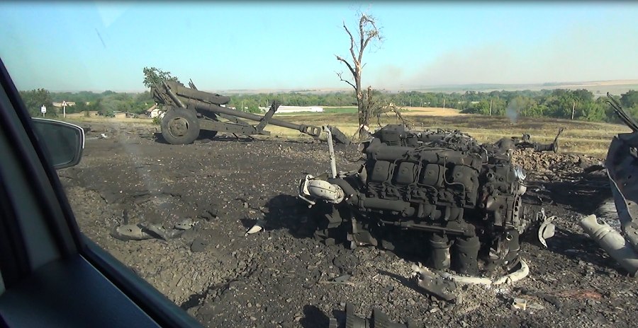 Уничтоженная техника российских боевиков, которые пытались прорваться через украинскую границу в районе пункта пропуска "Изварино". Июль 2014г.