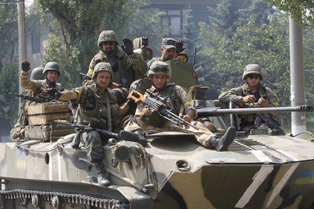 Украинские десантники в освобожденном населенном пункте. Август 2014г.