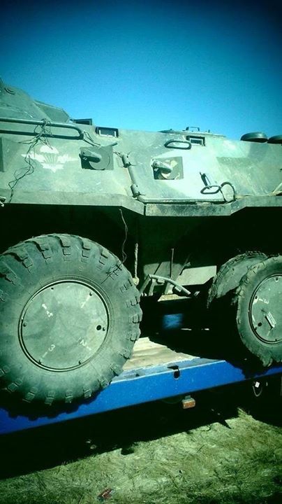 Уничтоженный бойцами добровольческого батальона "Азов" российский БТР-80, который в составе крупной группировки войск вторгся на территорию Украины в районе Новоазовска. 27 августа 2014г.