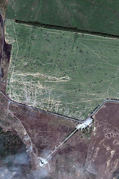 Спутниковый снимок стратегичски важной высоты Савур-могила после обстрела российской артиллерии и РЗСО. Конец августа 2014г.