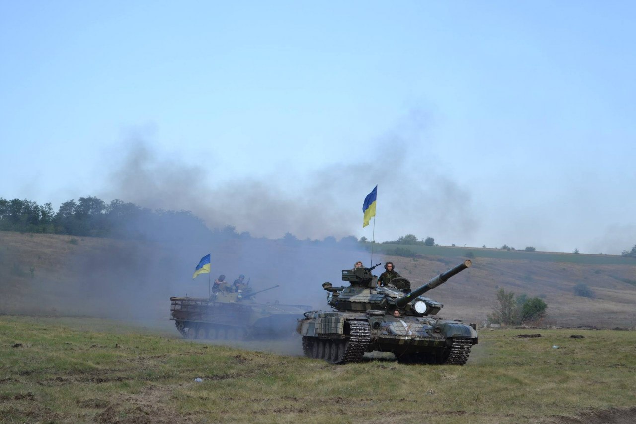 Украинские БМП-2 и Т-64БВ под Мариуполем. Сентябрь 2014г.