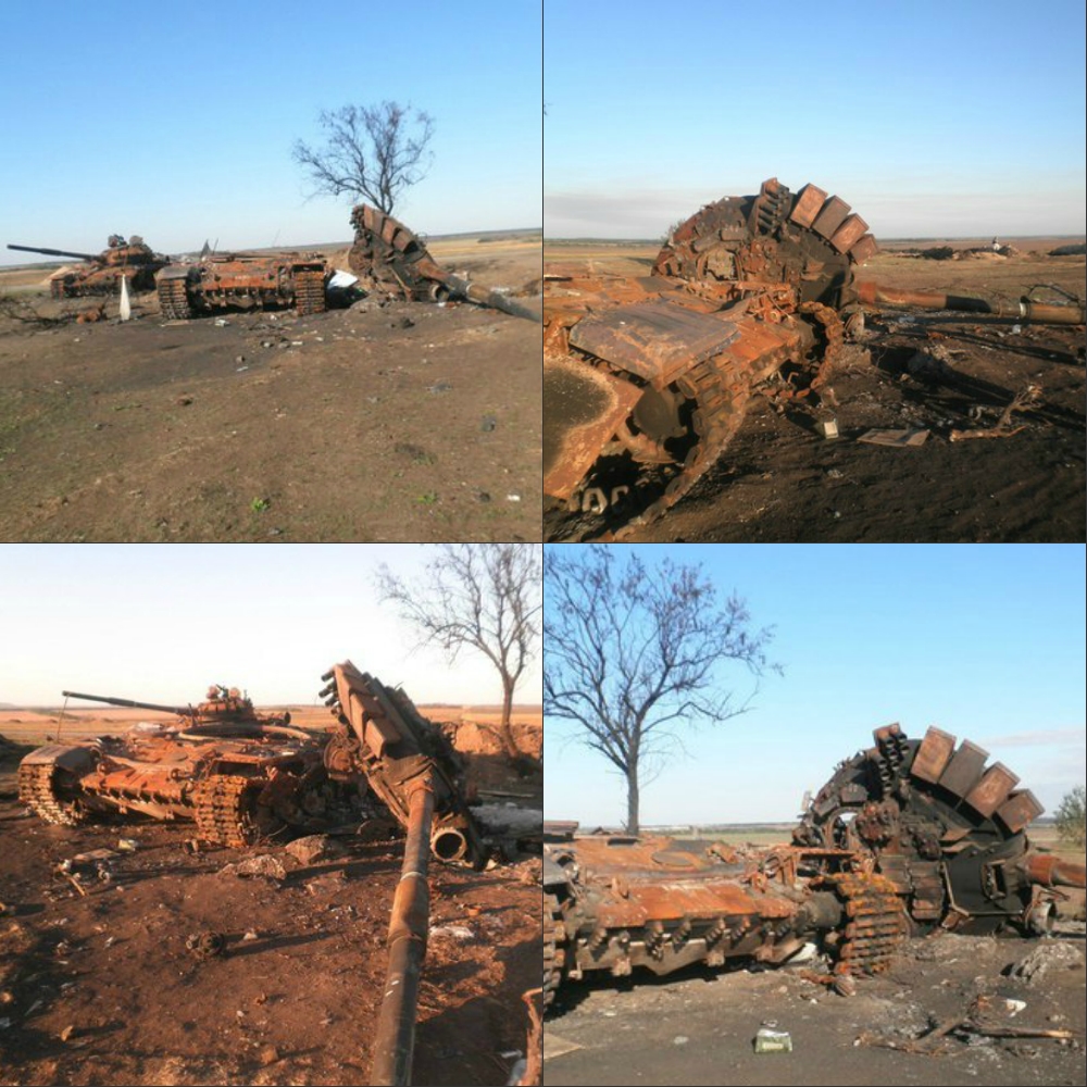 Уничтоженные российские танки Т-72БА под Старобышево. Сентябрь 2014г.