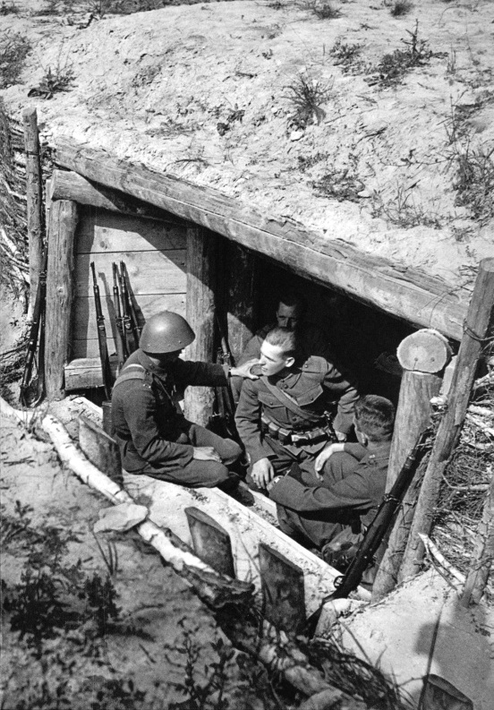 Чехословацкие солдаты вооруженные винтовками vz24 в долговременном укреплении во время учений.