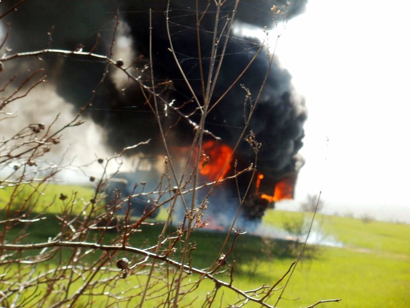 Уничтоженный бойцами 8-го полка ССО ВС Украины российский грузовик с боекоплектом в районе c.Сентяновка. Конец апреля 2017г.