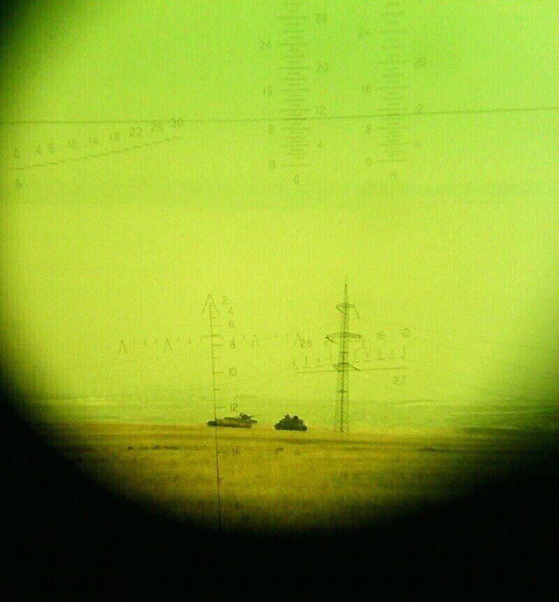 Подбитый российский танк Т-72Б и МТ-ЛБ в прицеле танка Т-64БВ из состава 92-й ОМБр ВС Украины. Район Санжаровки. 28 января 2015г.
