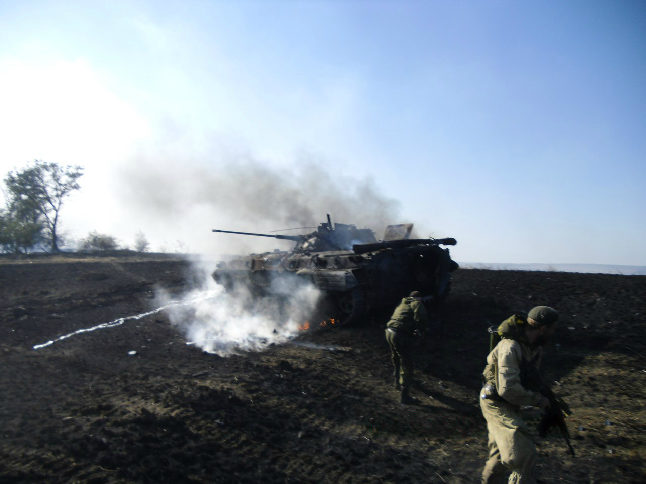 Российские оккупанты возле подбитой БМП-2 из состава интернационального бандформирования «Пятнашка». 2015 год.