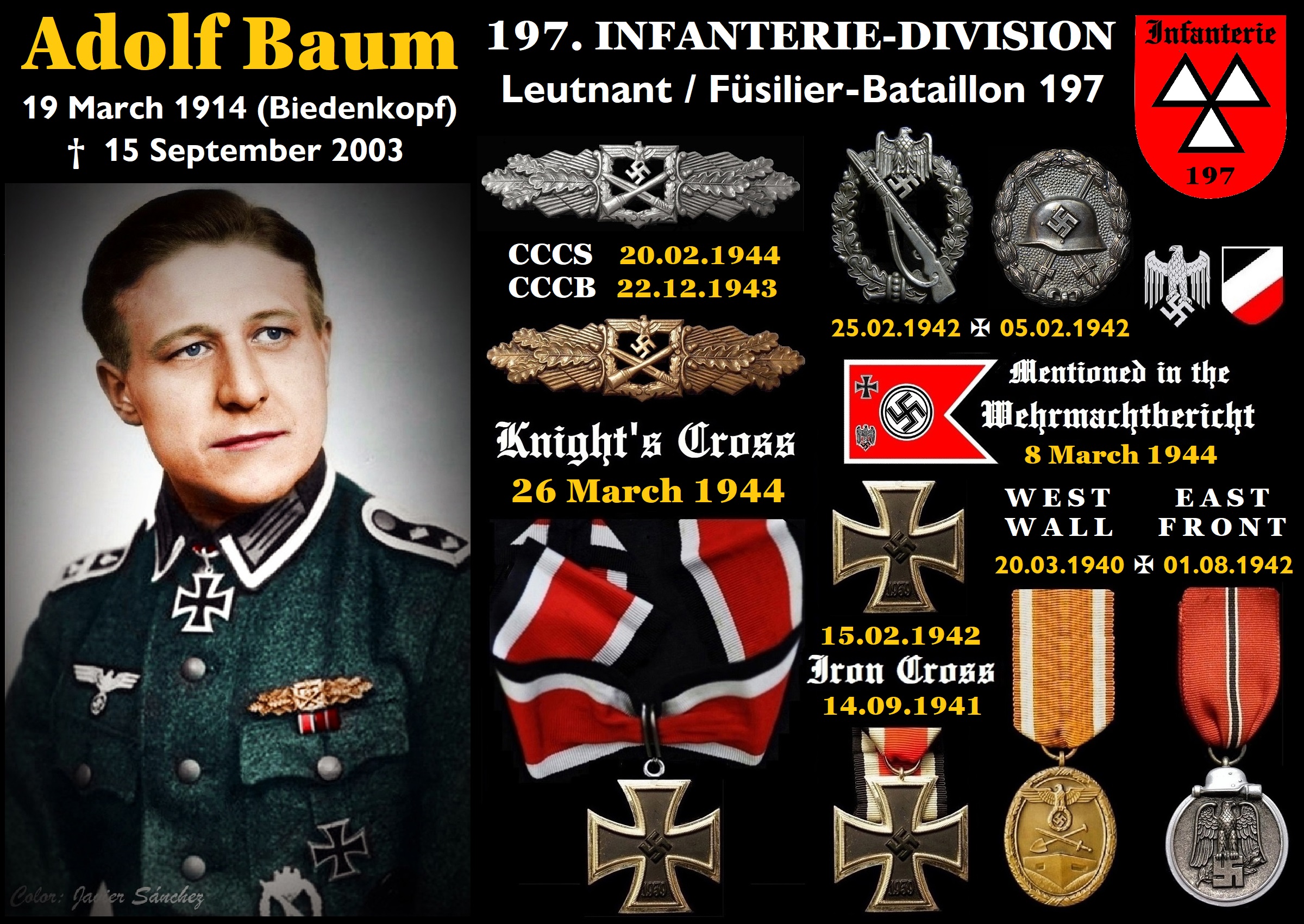 ✠ Löw Edler von, Alfred 11.03.1943 ✠ Luiz, Hermann 28.05.1944 ✠ Mack, Erwin 08.12.1942 ✠ Mattes, Erwin 20.09.1943 ✠ Matthiä, Friedrich 28.02.1945 ✠ Mischke, Artur 07.01.1945 ✠ Moldaschl,... -