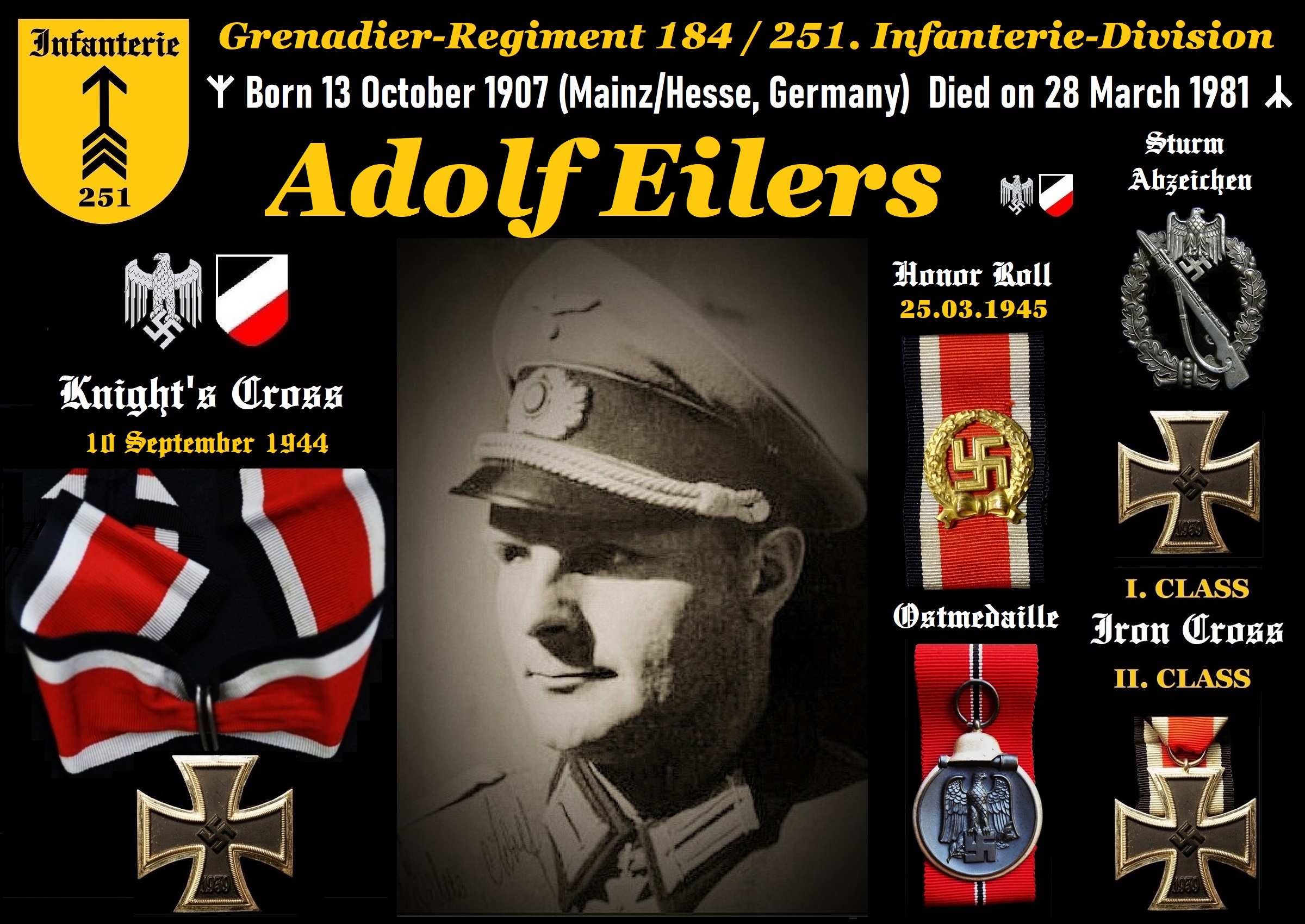 ✠ Löw Edler von, Alfred 11.03.1943 ✠ Luiz, Hermann 28.05.1944 ✠ Mack, Erwin 08.12.1942 ✠ Mattes, Erwin 20.09.1943 ✠ Matthiä, Friedrich 28.02.1945 ✠ Mischke, Artur 07.01.1945 ✠ Moldaschl,... -