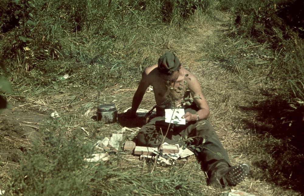 Panzermann Vor Sturmgeschütz Panzer Mit Tarnung Im Kessel Brody Ukraine ´44
