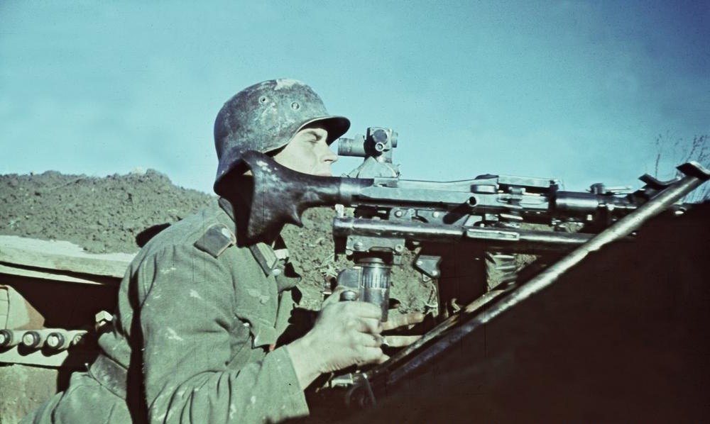 Grenadier Mit Stielhandgranate Und MG 34 Im Front Schützengraben In Rußland