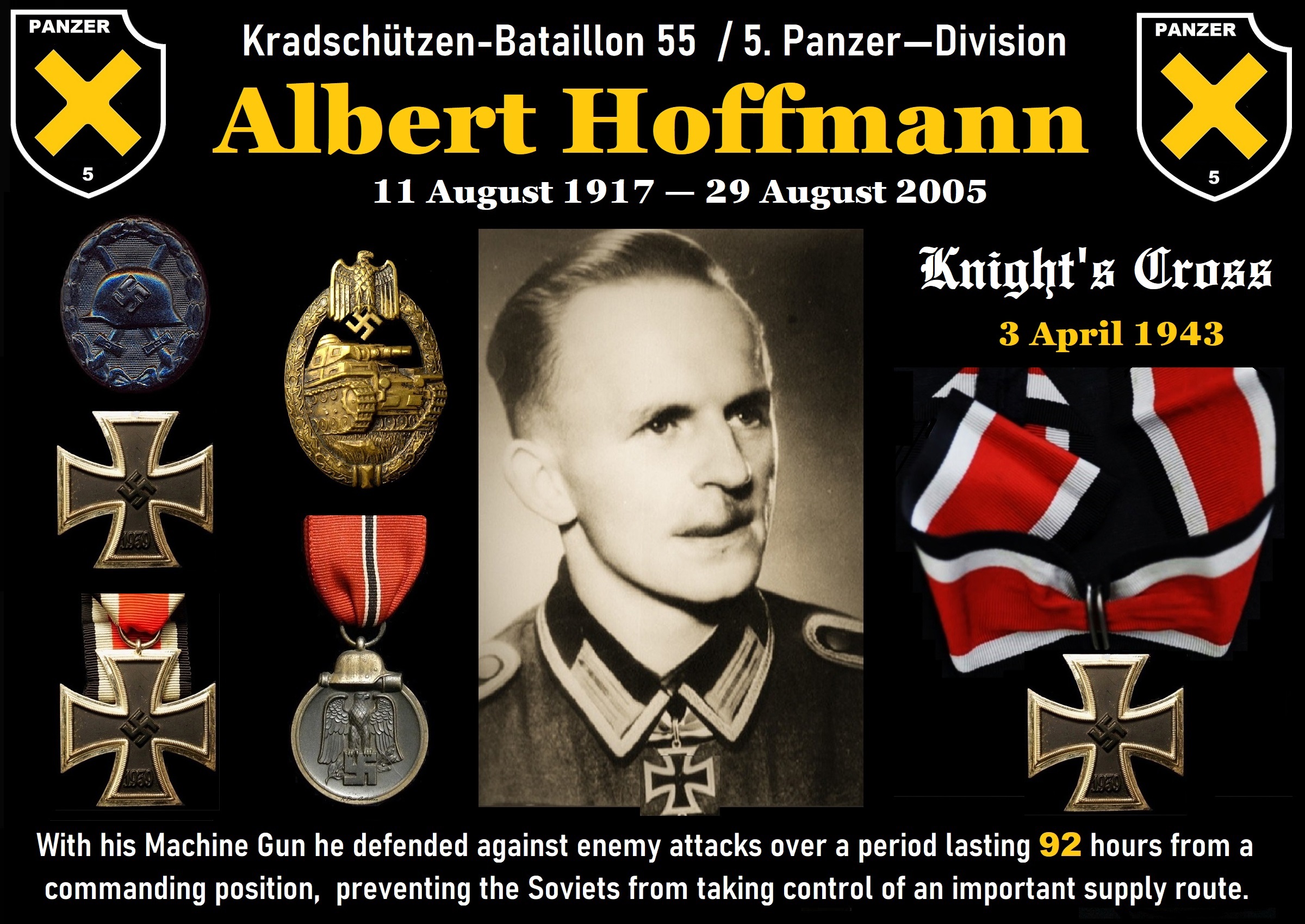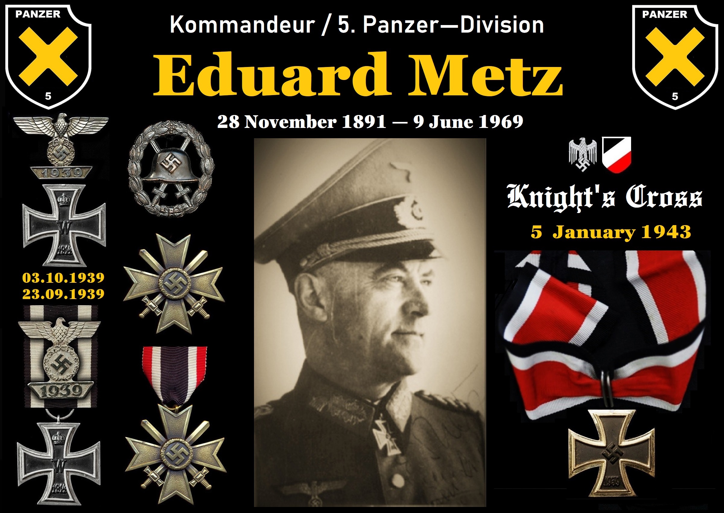 ✠ Erich Schmidt Date of Birth: 10.02.1911 - Gießen/Hesse, Germany. Date of Death: 13.11.1977 Major / Kommandeur schwere Panzer-Abteilung 507
