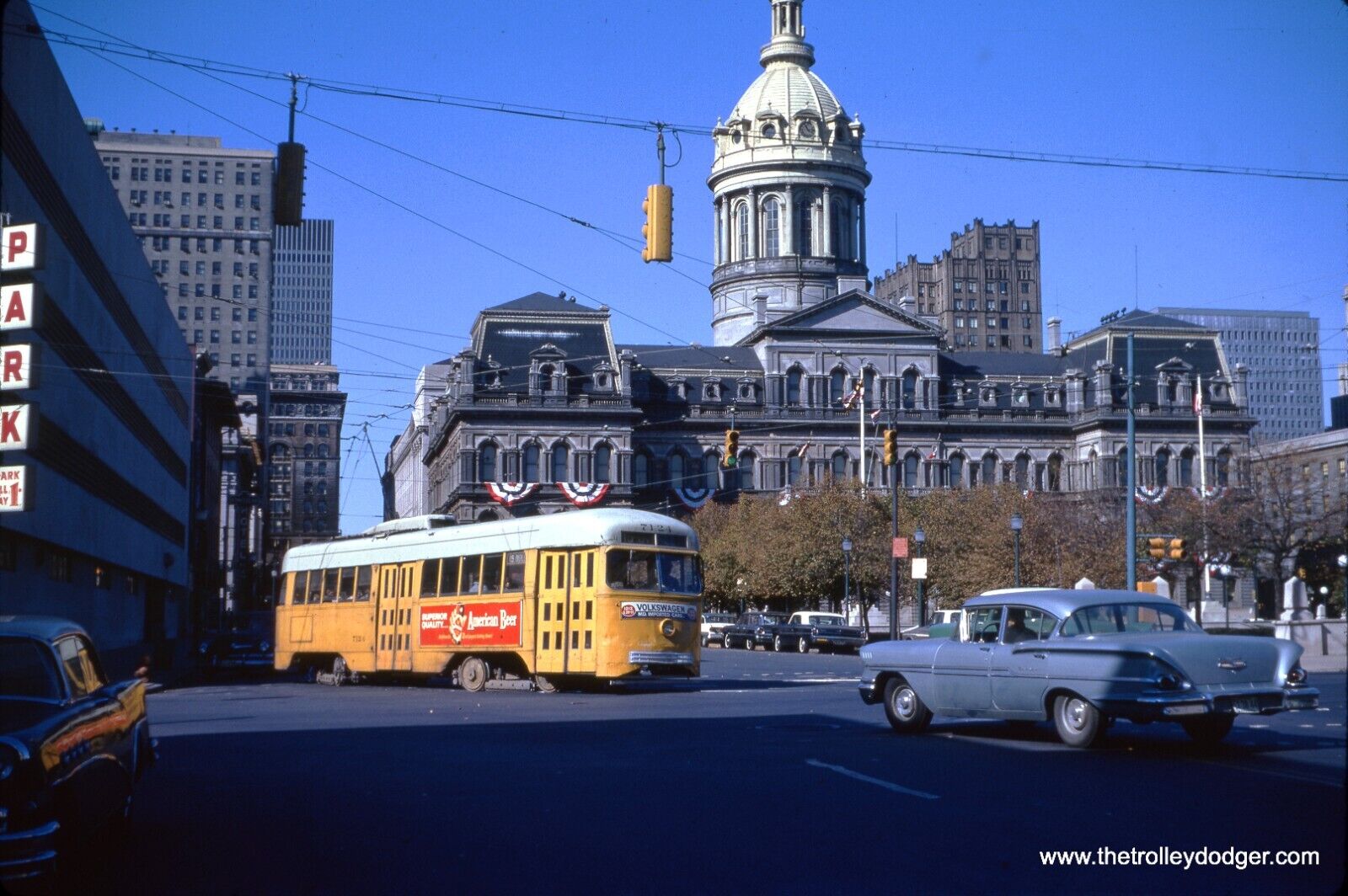 Subject: BTC Baltimore PCC Streetcar Trolley #7124 Location: Baltimore, Maryland (Route 15 - Gay and Fayette) Date: October 12, 1963 Photographer: Jeffrey L. Wien