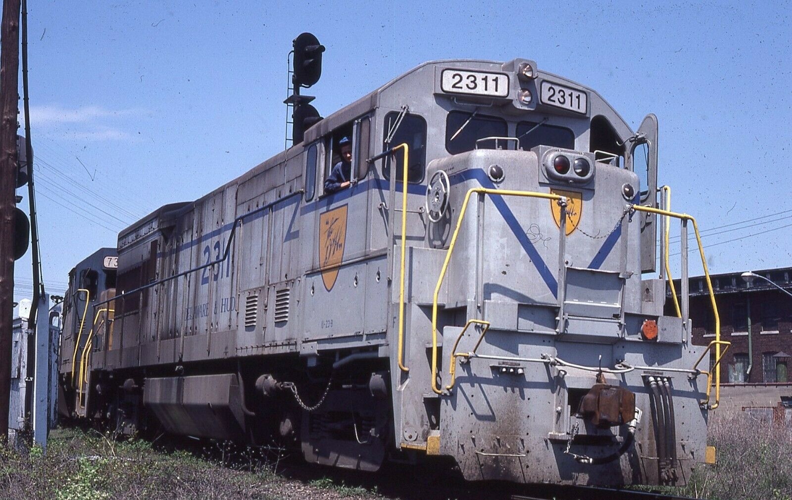 D&H GE B23-7 number 2311-2312 with Train BJNX at "YO" at Binghampton, NY. Taken - 05/15/1981.