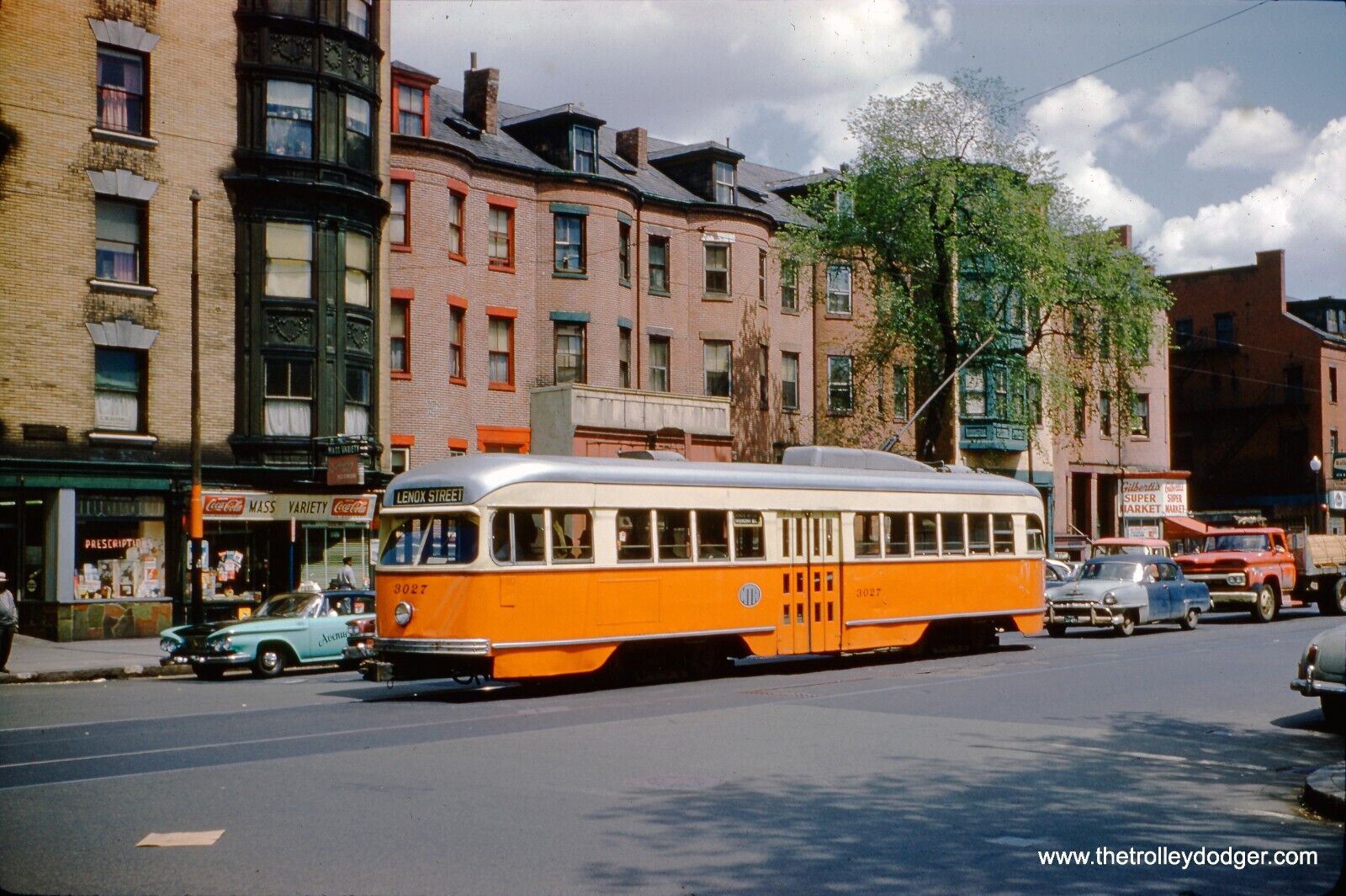 Subject: MTA Boston PCC Streetcar Trolley #3027 Location: Boston, MA (Mass Avenue and Tremont Streets) Date: May 1961 Photographer: Jeffrey L. Wien