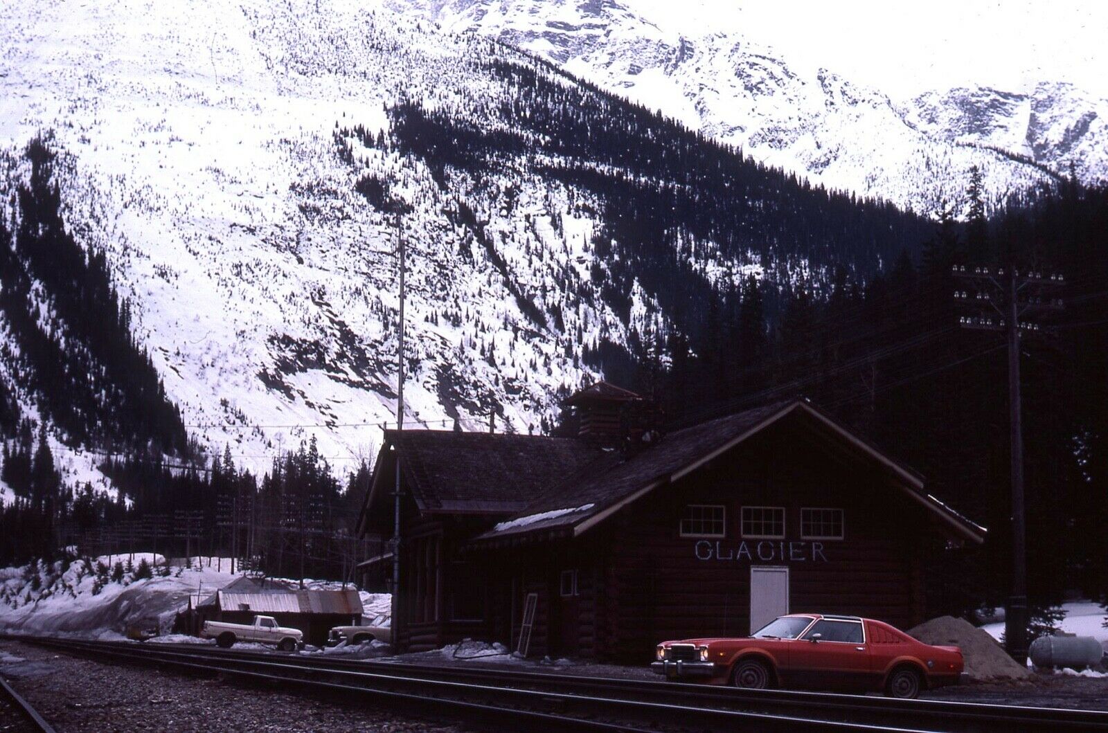 CANADIAN PACIFIC RAILWAY STATION SCENE AT GLACIER, BRITISH COLUMBIA. APRIL 1, 1978.