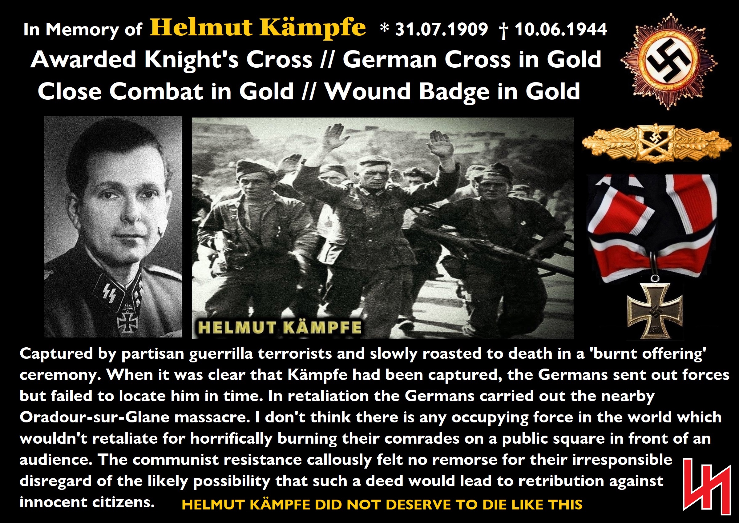In Memory of Helmut Kämpfe * 31.07.1909 † 10.06.1944 Awarded Knight's Cross // German Cross in Gold // Close Combat in Gold // Wound Badge in Gold