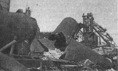 Доменна піч №2 Криворізького металургійного заводу, підірвана окупантами. 1944 р.