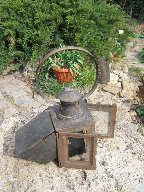 фонарь керосиновый сигнальный Новосергиевского завода 1961 года с добавленой светомаскировочной шторкой и шестодержателем