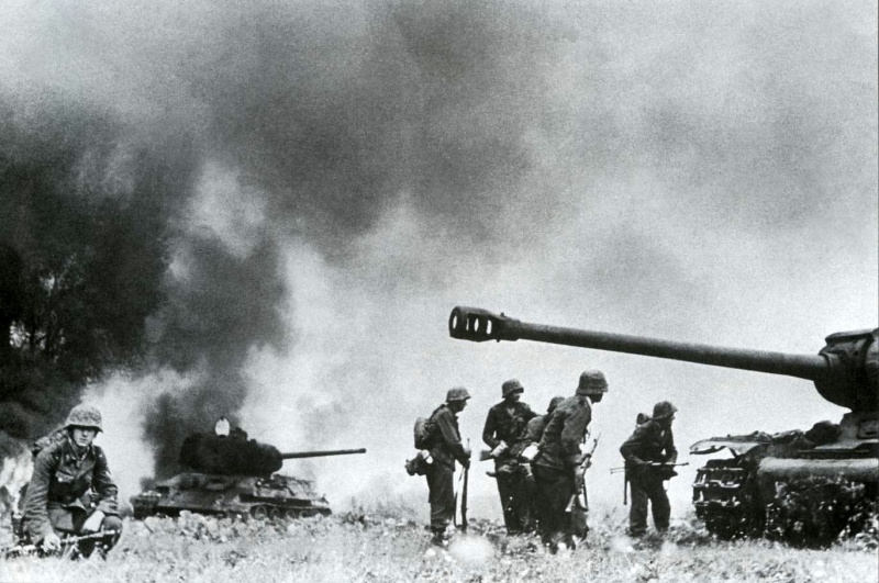 Немцы осматривают подбитые Т 34 ИС 2