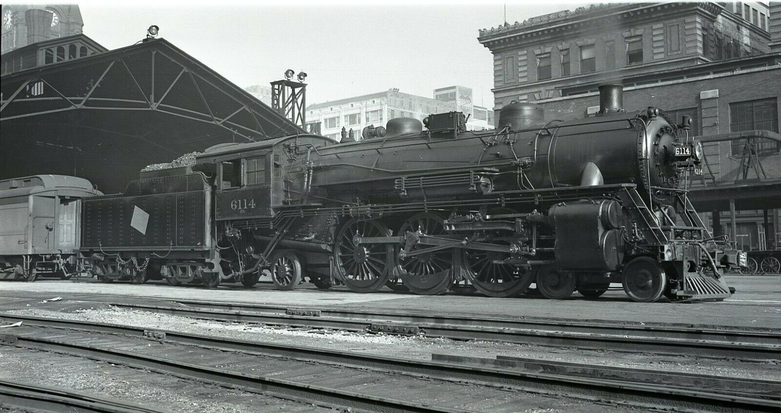 Chicago, MIlwaukee, St. Paul & Pacific Steam number 6114, 4-6-2 at Milwaukee, WI. Taken - 09/1936.
