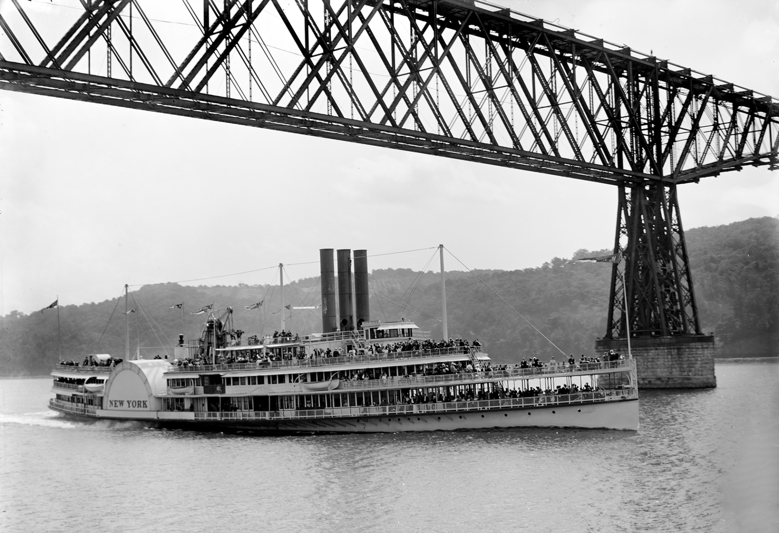 Steamship New York, on the Hudson River, Passing Under the Poughkeepsie Bridge, New York between 1900-1908.