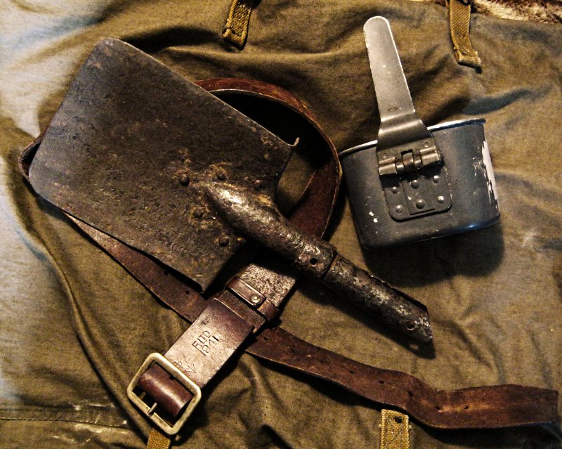 Еще немного прошлого века. Штык от лопаты 1915г, ремень F.LTD 1941г. кружка от бундесовского комбера просто чтобы заполнить место в кадре :)
