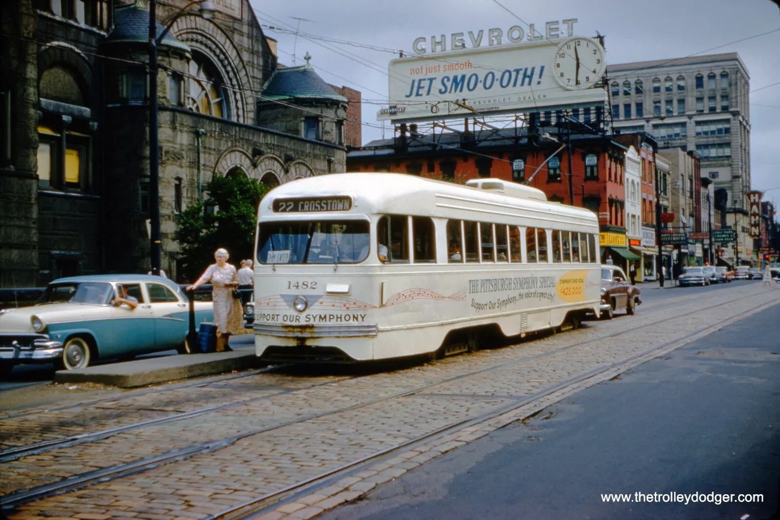 Subject: PRC Pittsburgh Railways PCC Streetcar #1482 Location: Pittsburgh, Pennsylvania (Route 22 - Federal and Ohio) Date: September 2, 1961 Photographer: Jeffrey L. Wien