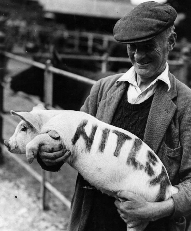 Фермер назвал поросенка, пытавшегося оттеснить от кормушки других поросят и забрать себе всю еду, Гитлером и изолировал его. Англия,